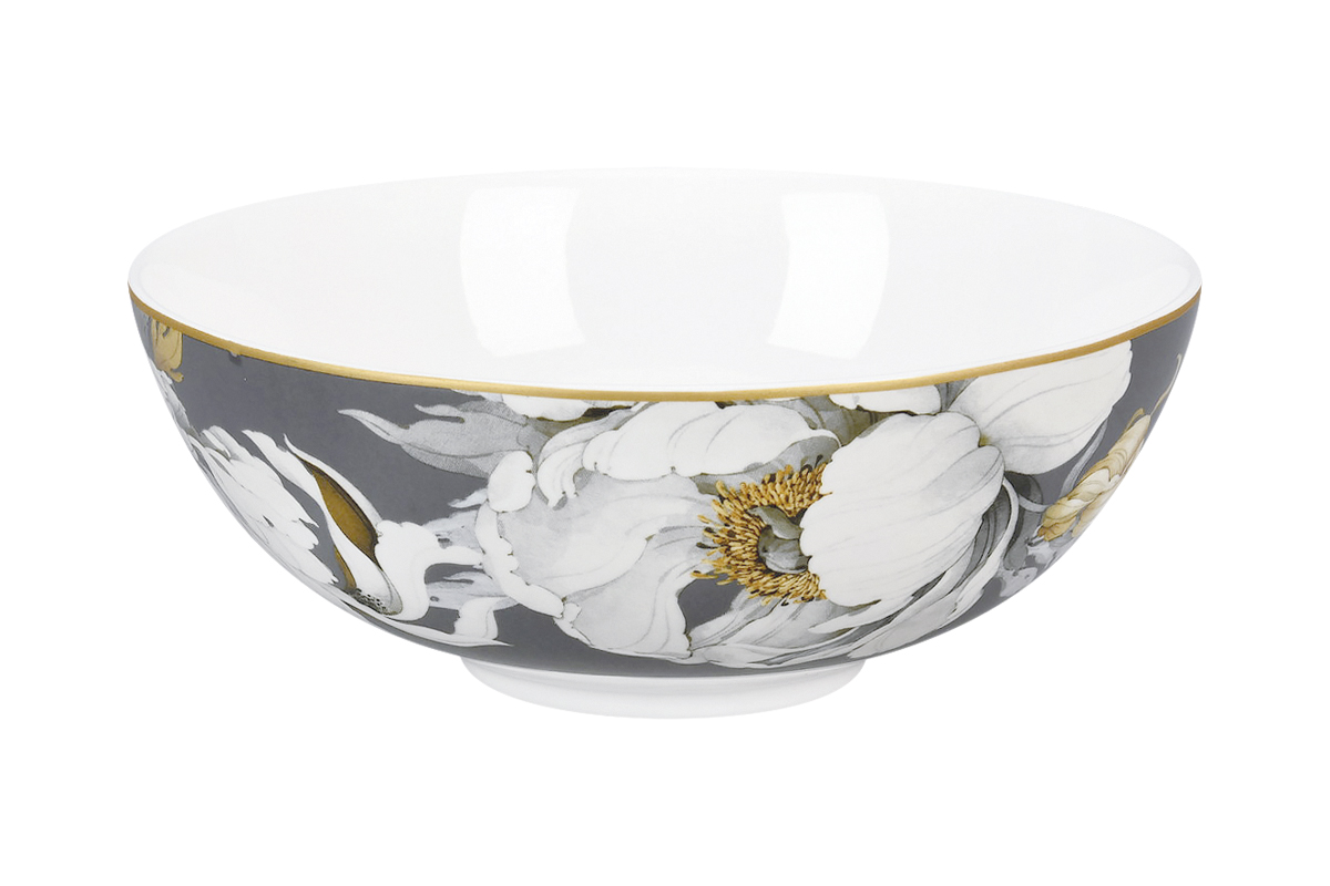 Салатник выполнен из фарфора и декорирован интересным цветочным принтом. Удобная посуда подойдет для подачи разнообразных салатов.