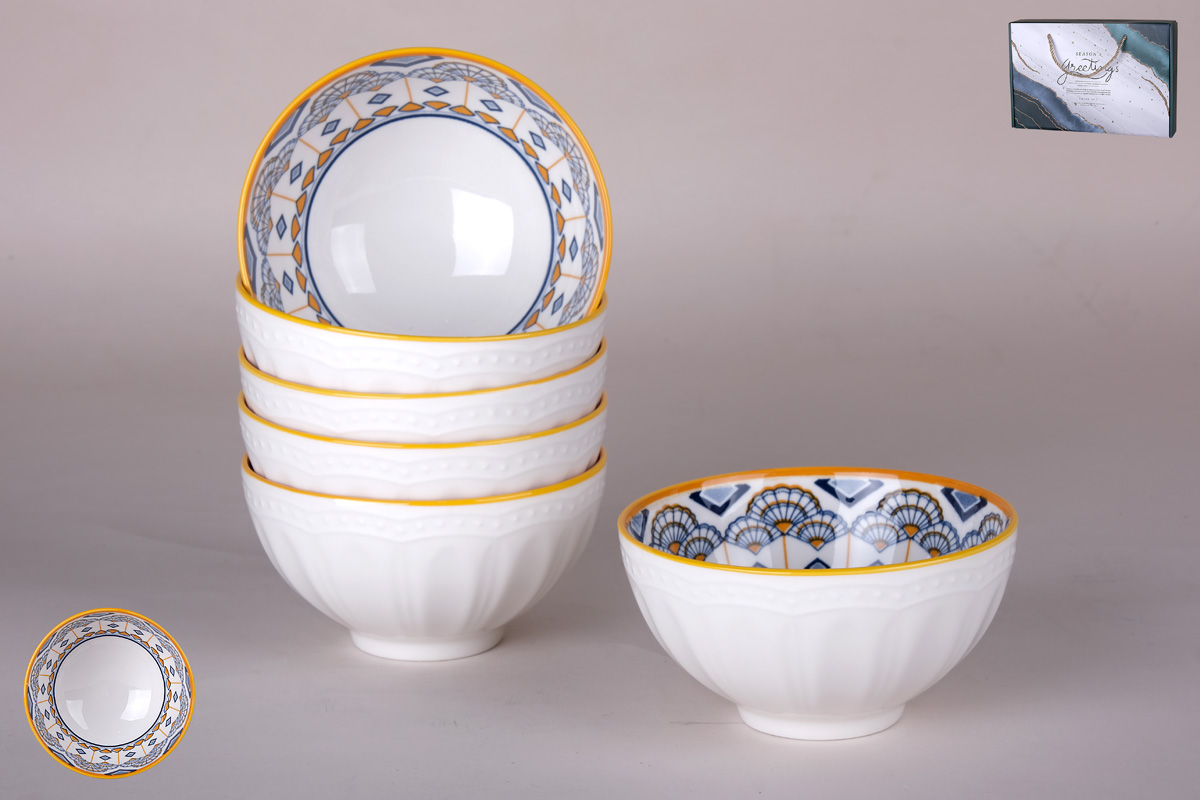 Нарядный набор пиал изготовлен из качественного фарфора. Комплект рассчитан на 6 персон. На каждом изделии нанесен интересный узор.