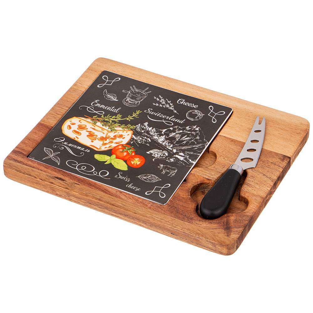 Набор для сыра "Секретные ингредиенты" состоит из фарфоровой доски с отделкой деревом и сырорезки. Комплект выглядит стильно и максимально функционален.