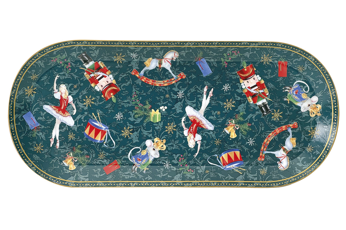 Блюдо овальное "Щелкунчик и мышиный король" (33х11,5 см, зеленый)