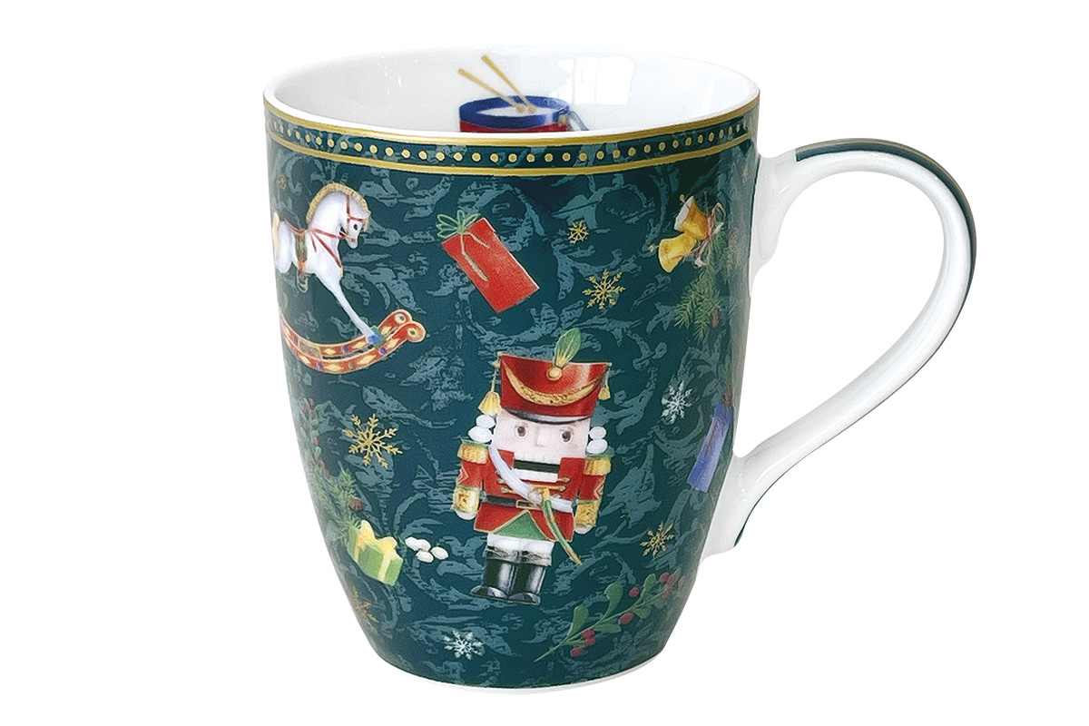 Фарфоровая кружка представлена из коллекции "Щелкунчик и мышиный король" в зеленом цвете. Изделие имеет дизайнерский декор, который делает модель нарядной.