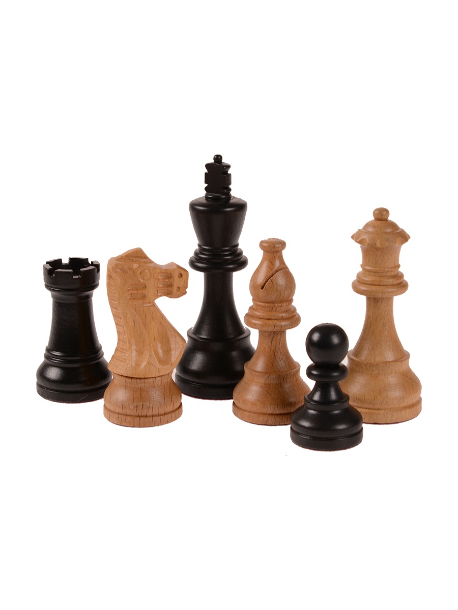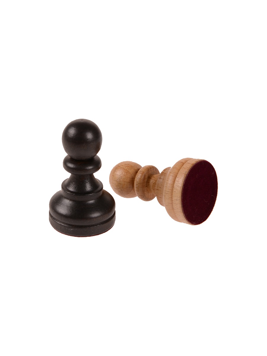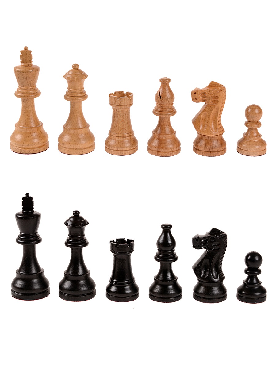 Шахматные фигуры изготовлены из твердого бука и покрыты матовым лаком. Все фигуры подклеены качественным бархатом и имеют утяжеление.