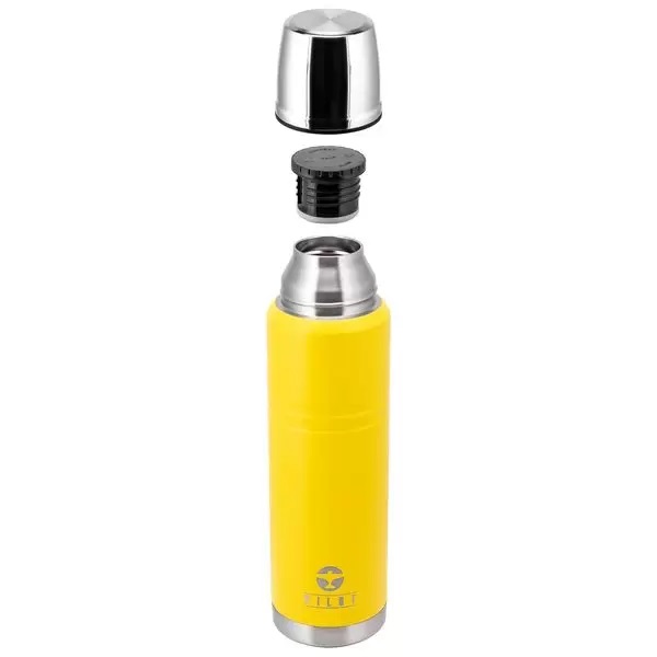 Термос выполнен из нержавеющей стали и покрыт молотковой эмалью, которая является весьма ударопрочной, что предотвратит появление сколов и царапин. Колба термоса имеет дополнительную медную изоляцию, что основательно повышает возможность долго поддерживать тепло или холод напитка. Пробка термоса отвинчивается и оборудована дополнительными каналами, благодаря которым удобнее наливать жидкость, не обжигая рук и не охлаждая содержимое.