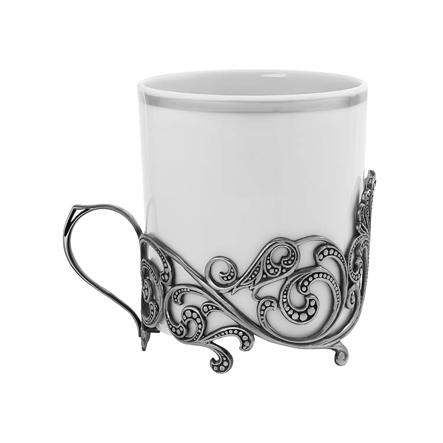 Чашка чайная "Медведь" посеребренная с чернением (200 мл)