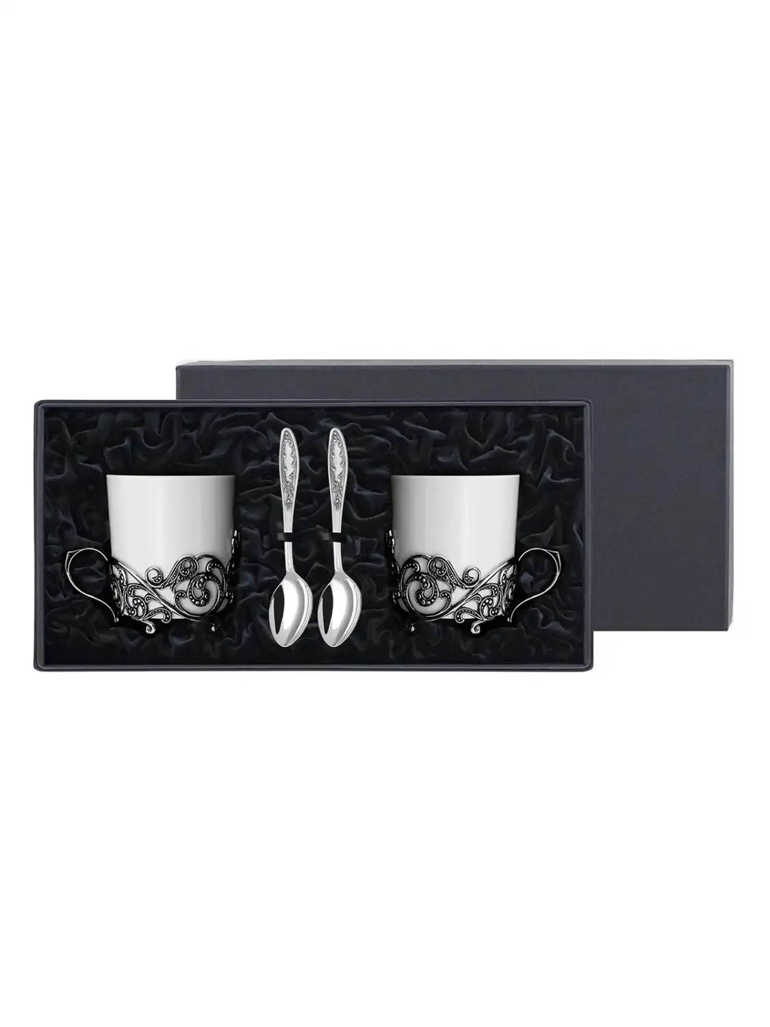 Набор чайный "Фея" посеребрение (999 пр.) с чернением (2 предмета в футляре)