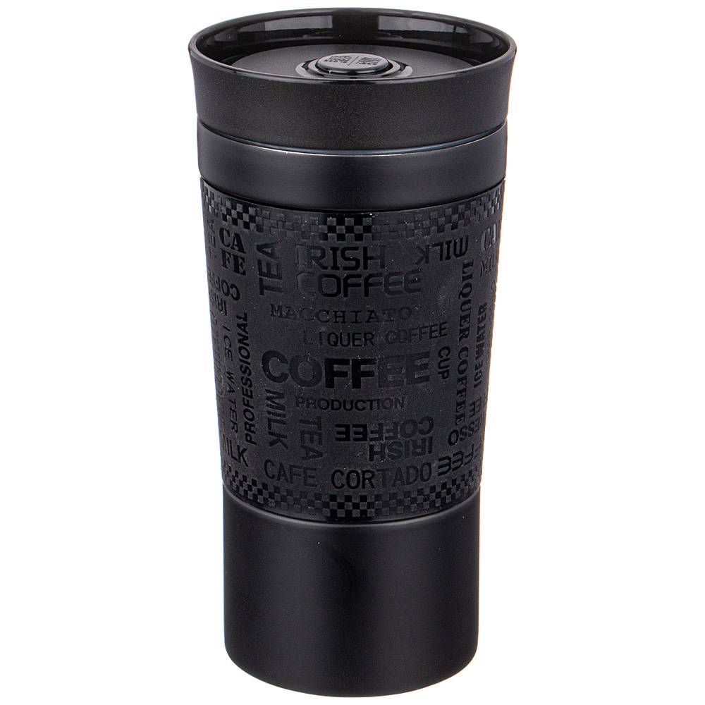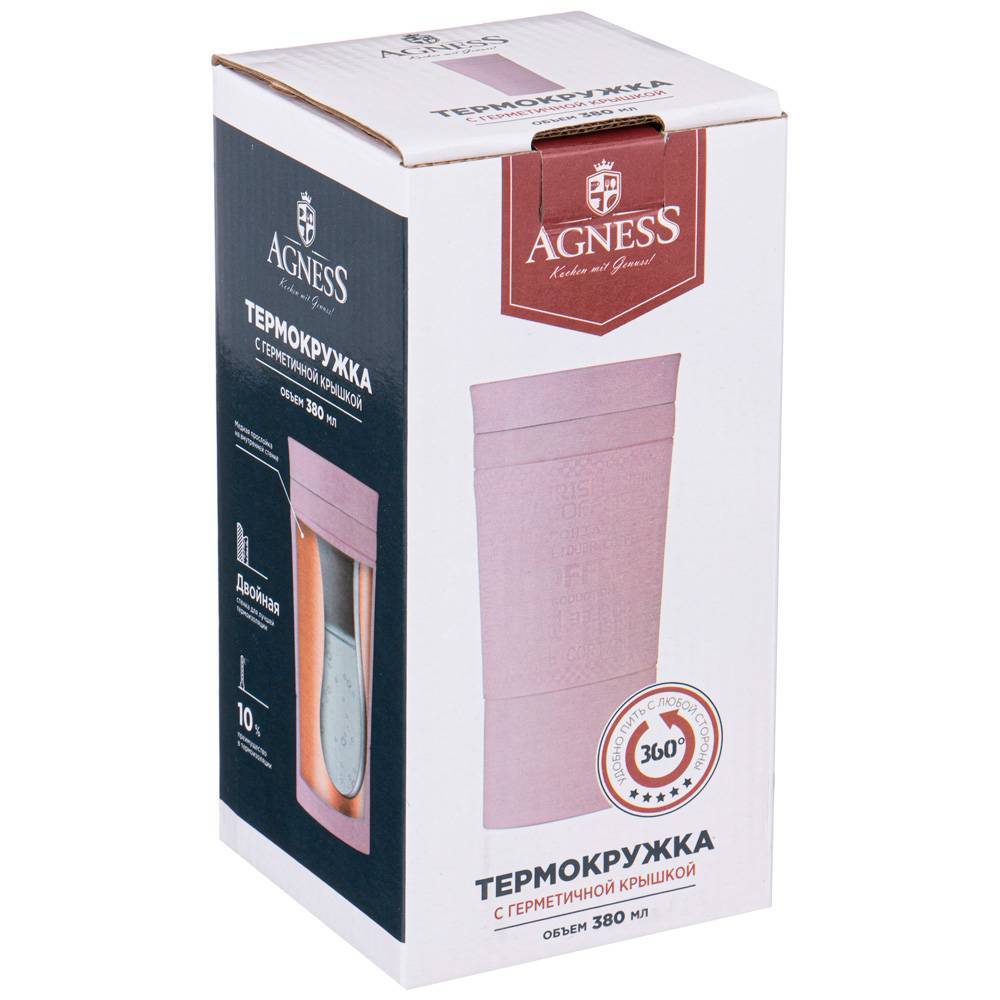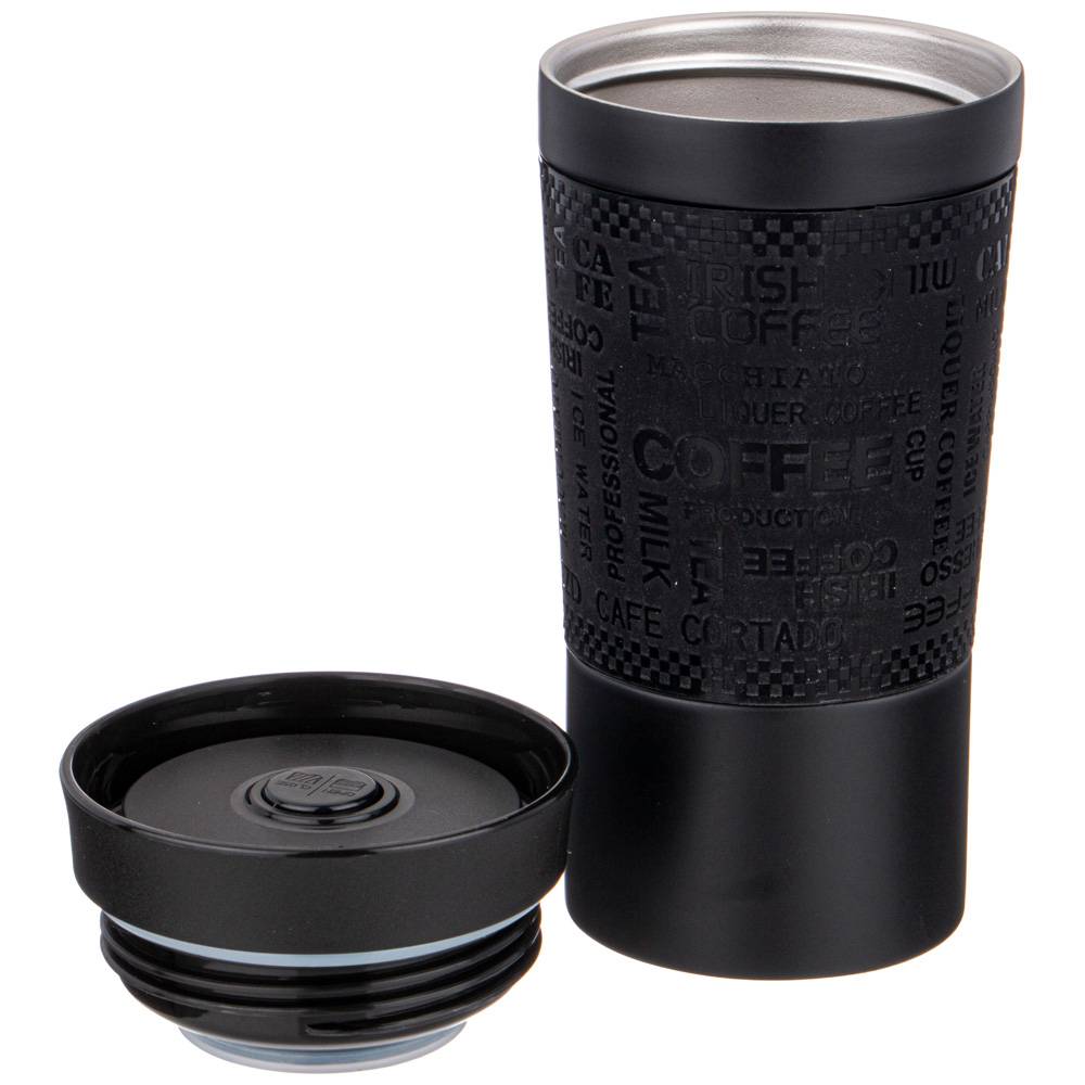 Термокружка "Агнесс" в черном цвете изготовлена из нержавеющей стали. Термоизоляцию увеличивает медная прослойка внутри изделия.