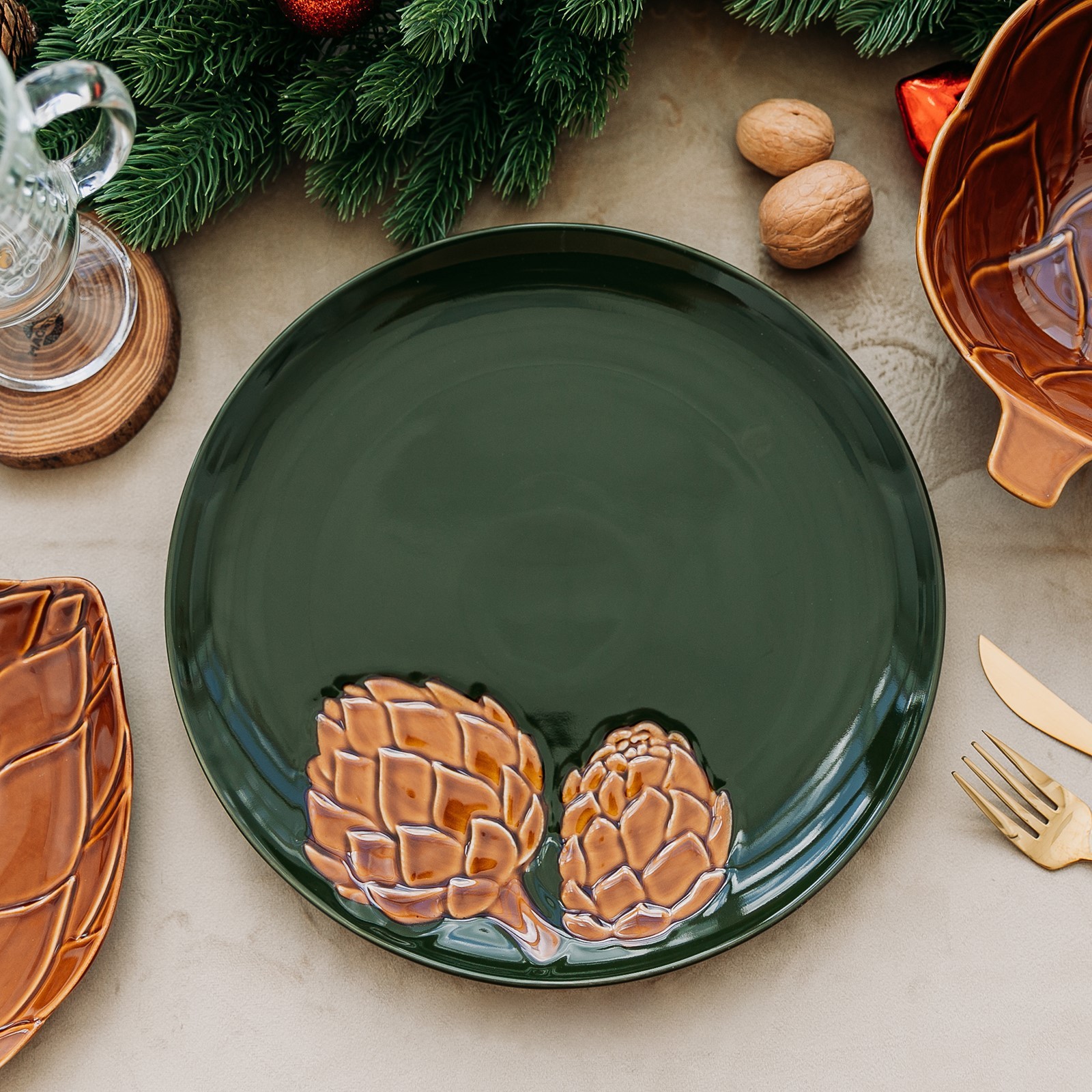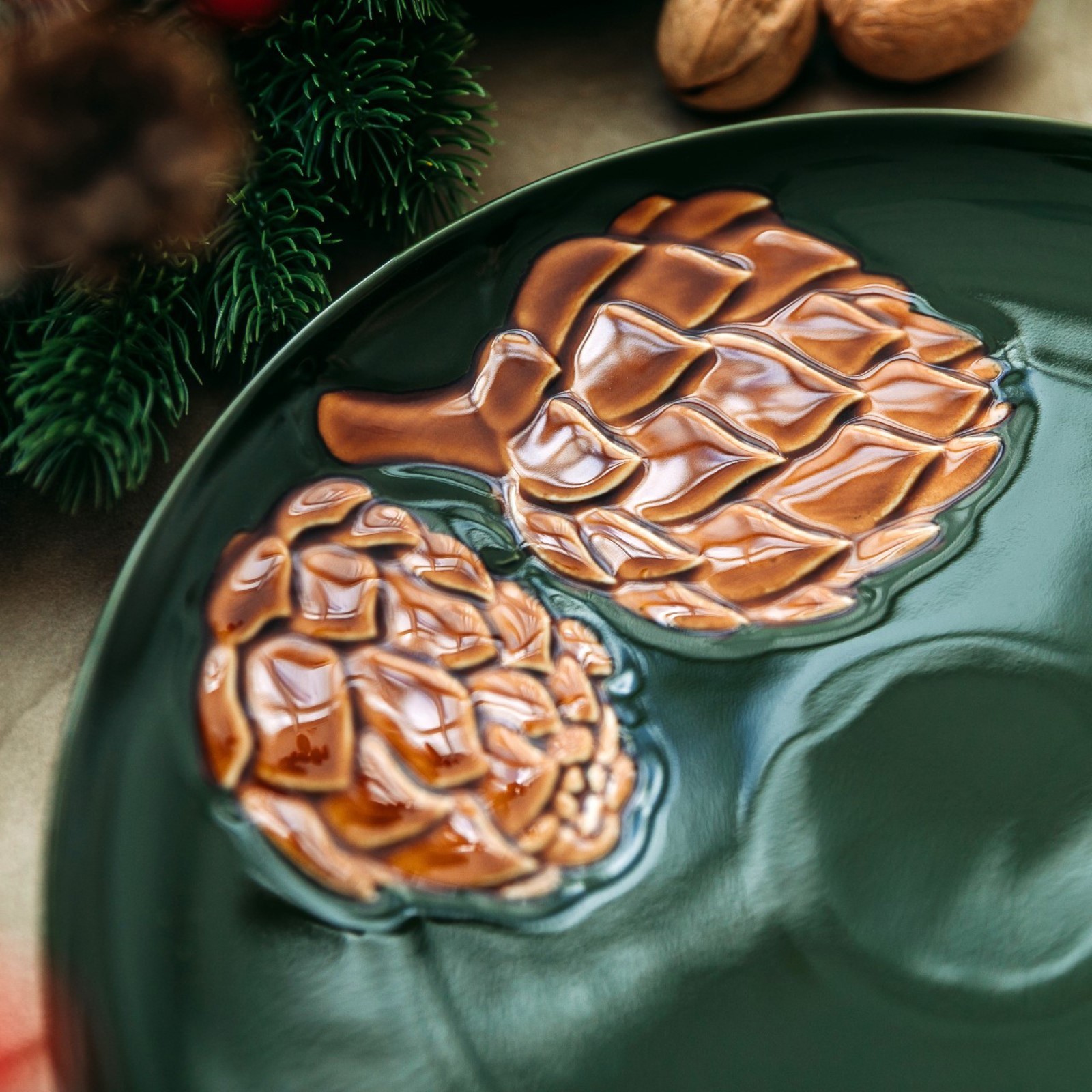 Круглое блюдо из серии "Зимний лес" выполнено из керамики с глянцевым покрытием. Невероятно красивый дизайн, который сделает красивый акцент при застолье.