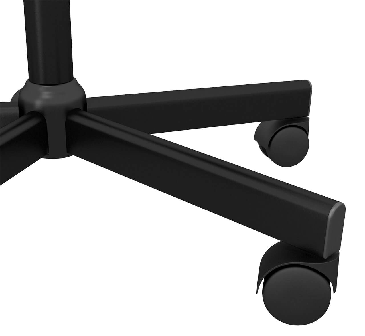 Широкая площадь опоры и пять лучей делают каркас устойчивым и надежным. Каркас выполнен из алюминия, что придает ему особую прочность, и в тоже время легкость. Покрыт порошковой краской, устойчивой к механическим повреждениям. Колеса выполнены из полипропилена и имеют резиновую основу, которая отличается устойчивой упругостью и выдерживает продолжительные нагрузки.
