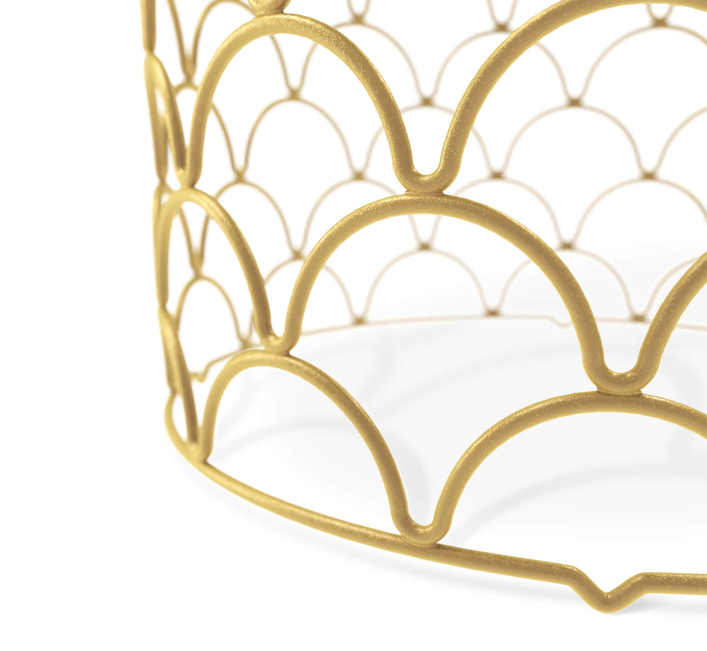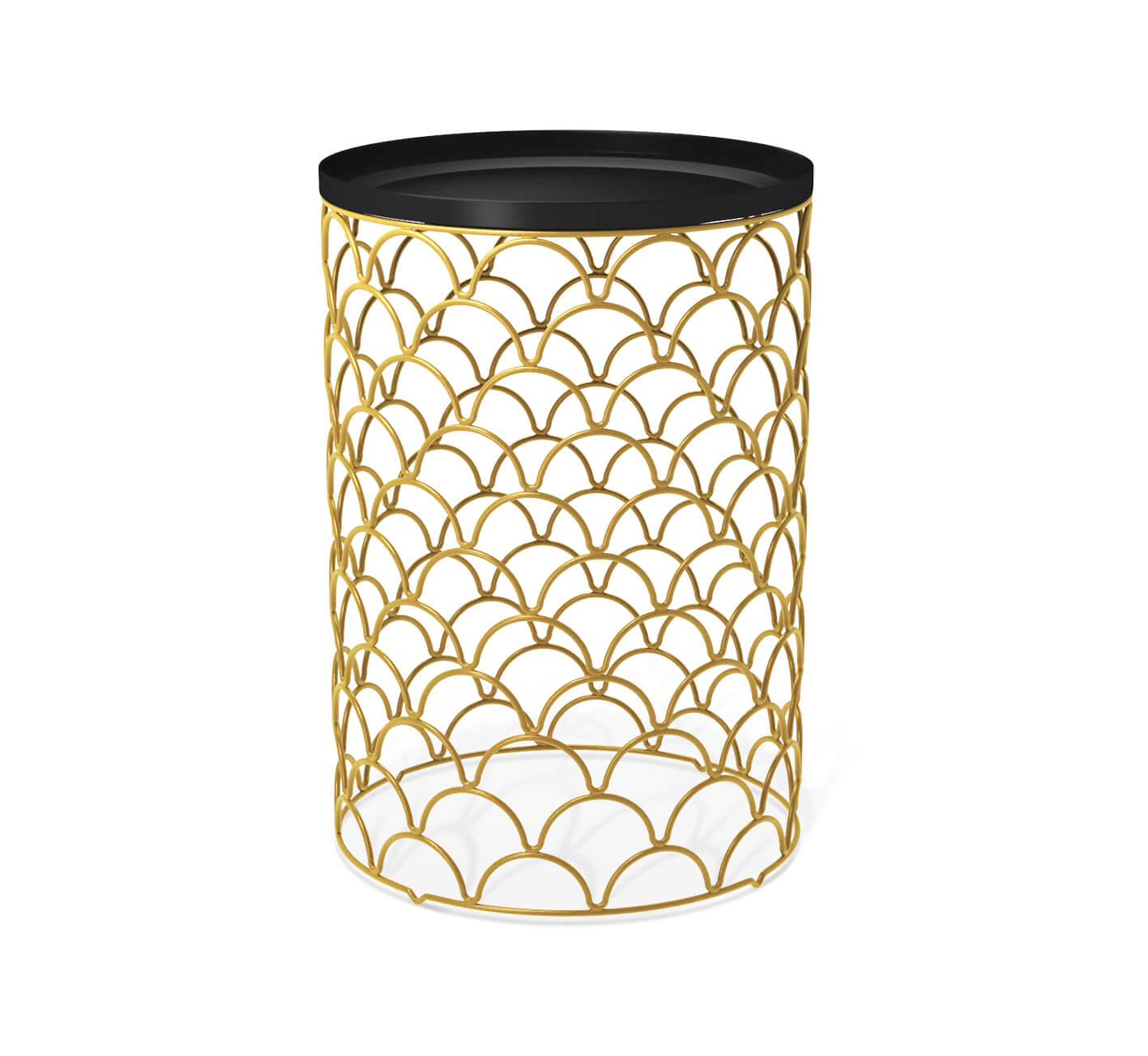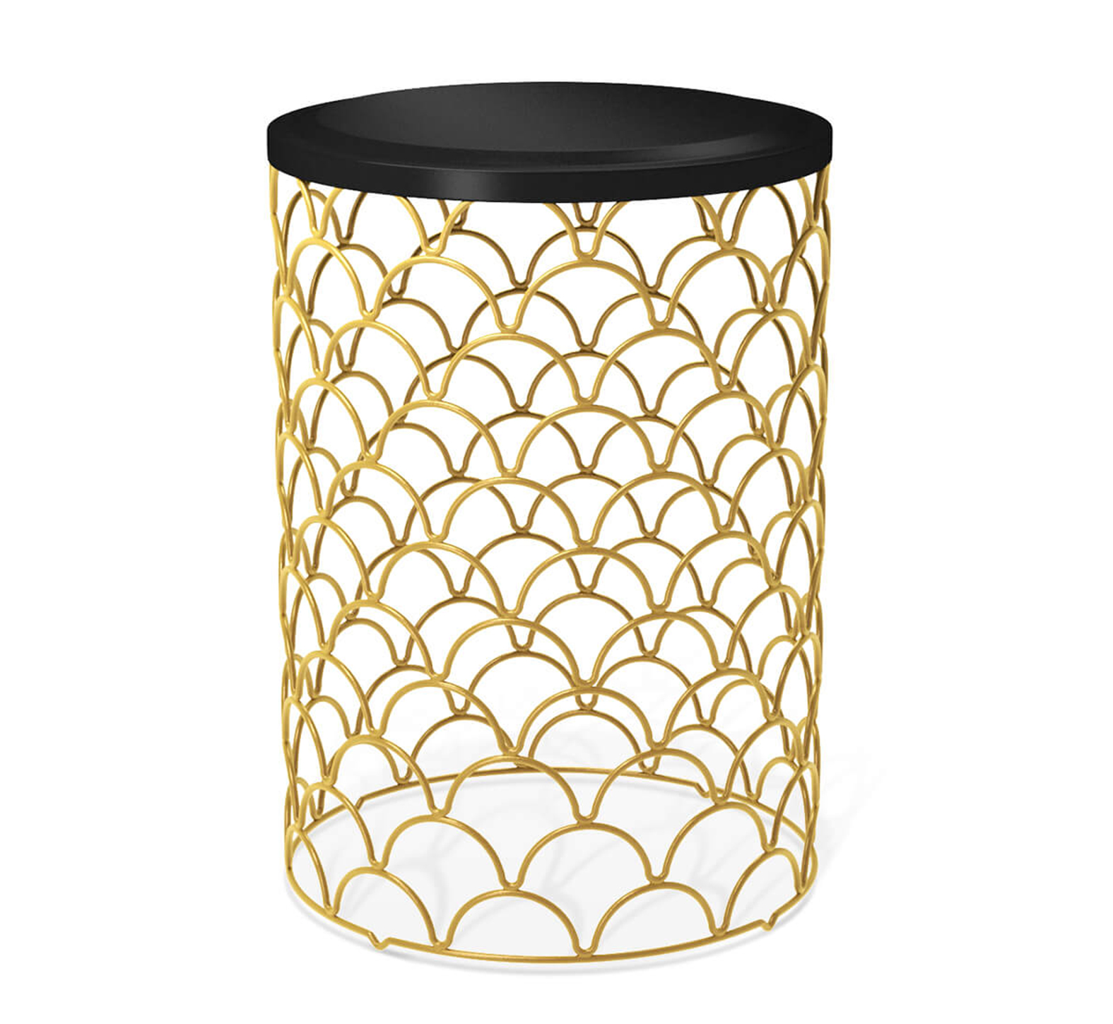 Отличительная особенность столика – золотое основание в стиле арт-деко в форме усеченного цилиндра. Оно выполнено из фигурно изогнутых металлических прутьев. Орнамент напоминает чешую фантастической рыбы или пайетки на вечернем платье.