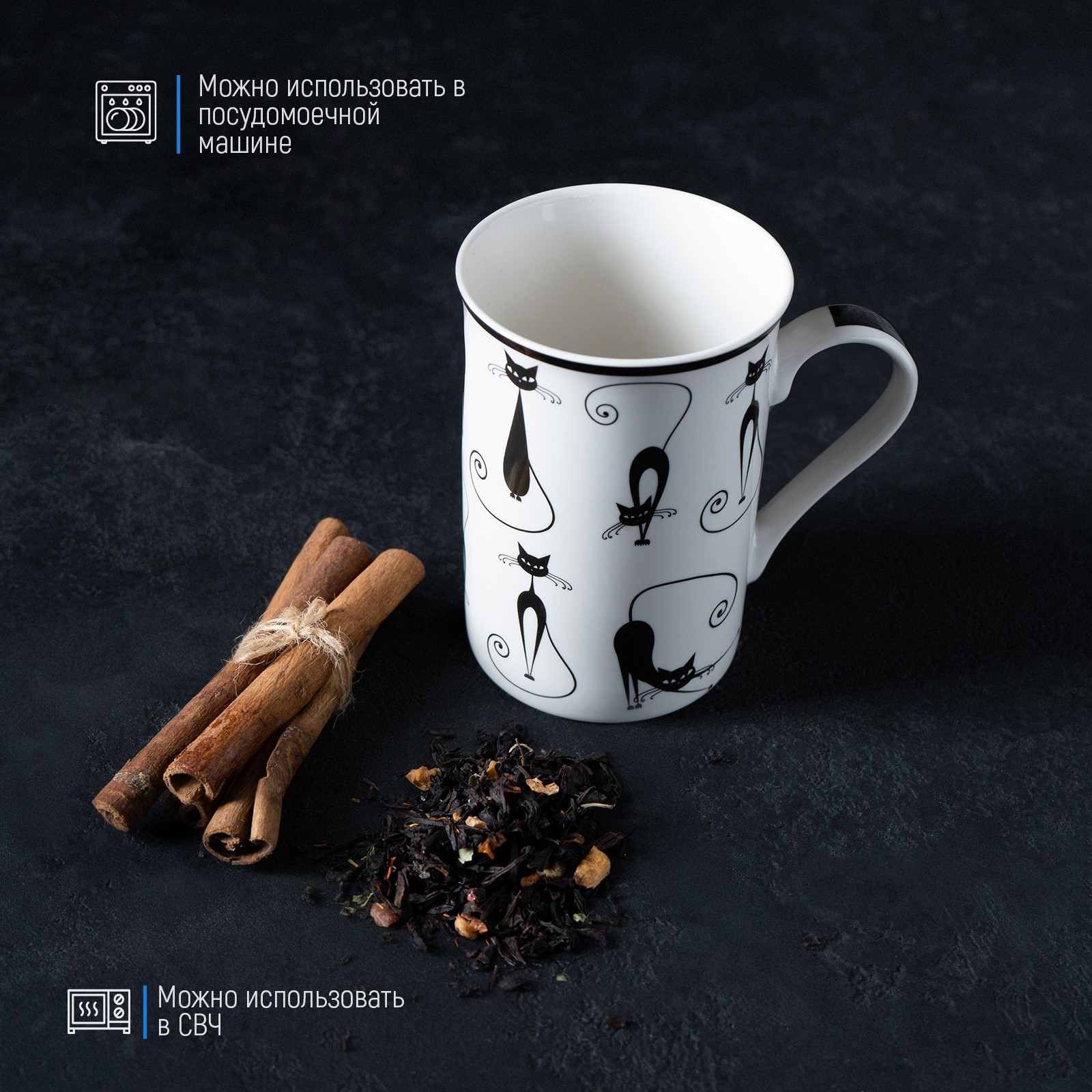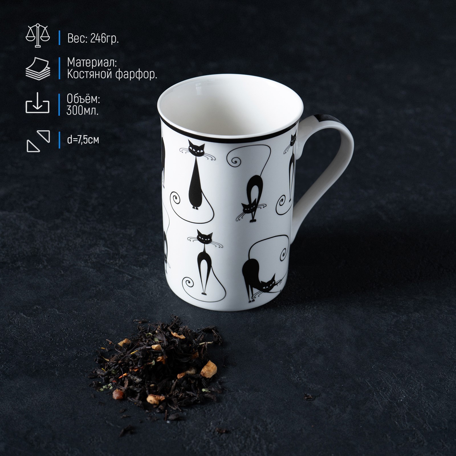 Когда хочется преподнести полезный, но при этом красивый сувенир - идеальным вариантом в данном случае может стать оригинальная фарфоровая кружка. Изделие декорировано интересным принтом в виде черных котиков.