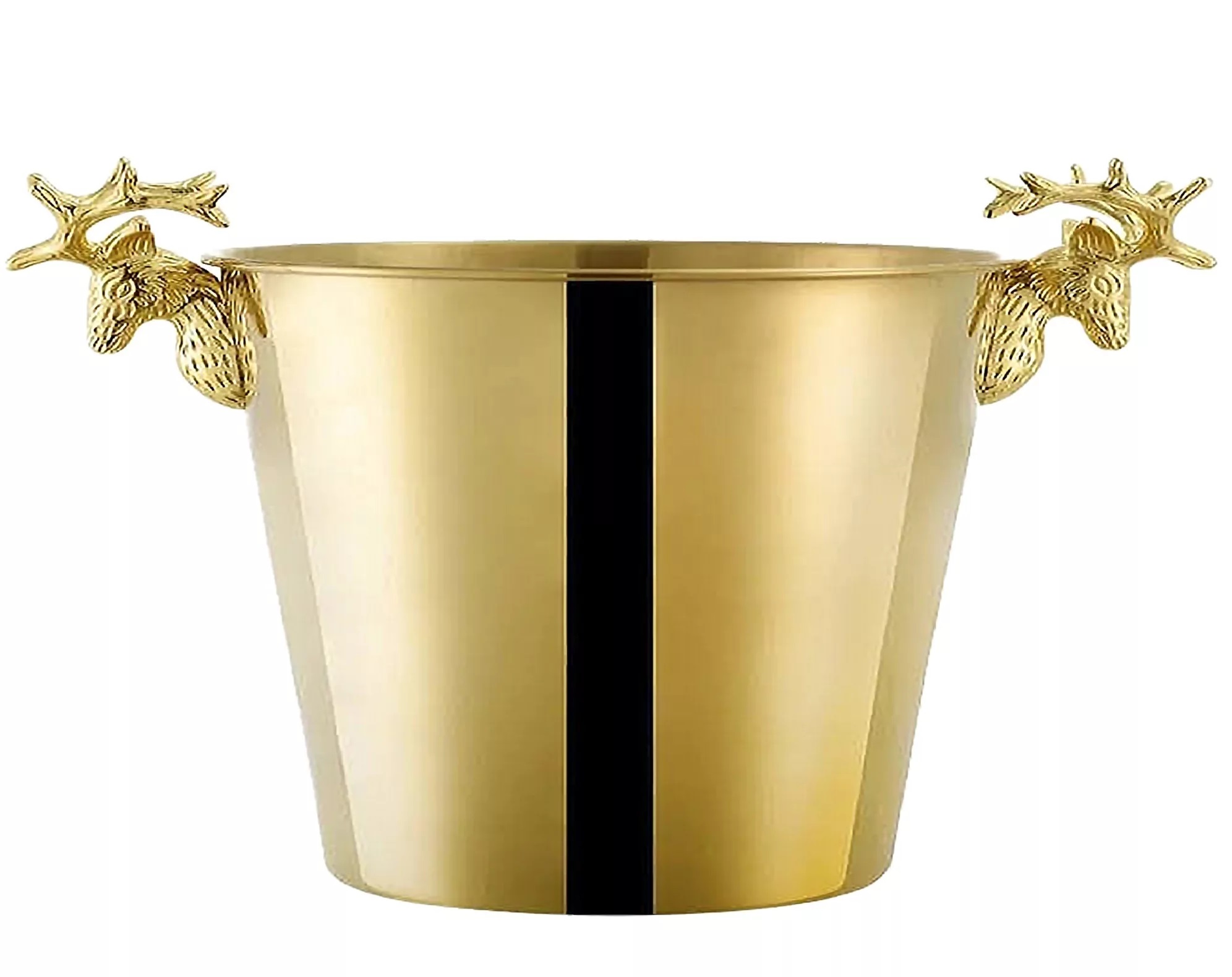 Дизайнерское ведро для льда выполнено из высококачественной нержавеющей стали и декорировано роскошными бюстами оленей, которые выполняют роль удобных ручек. Посуда со льдом предназначена для охлаждения не только шампанского, но и других напитков в бутылках.