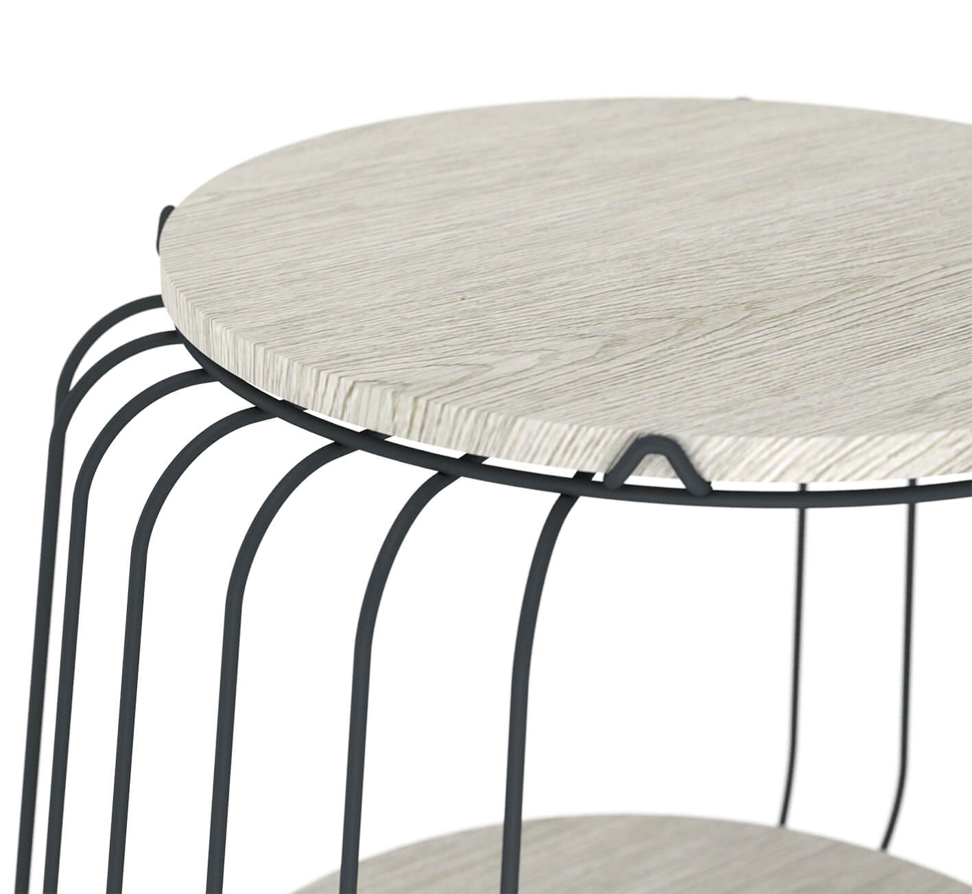 Верхняя и нижняя столешницы из МДФ толщиной 16мм, отличаются повышенной жесткостью и устойчивостью к окружающим воздействиям. Каркас столика выполнен из металлического прутка и окрашен порошковой краской, устойчивой к механическому воздействию.