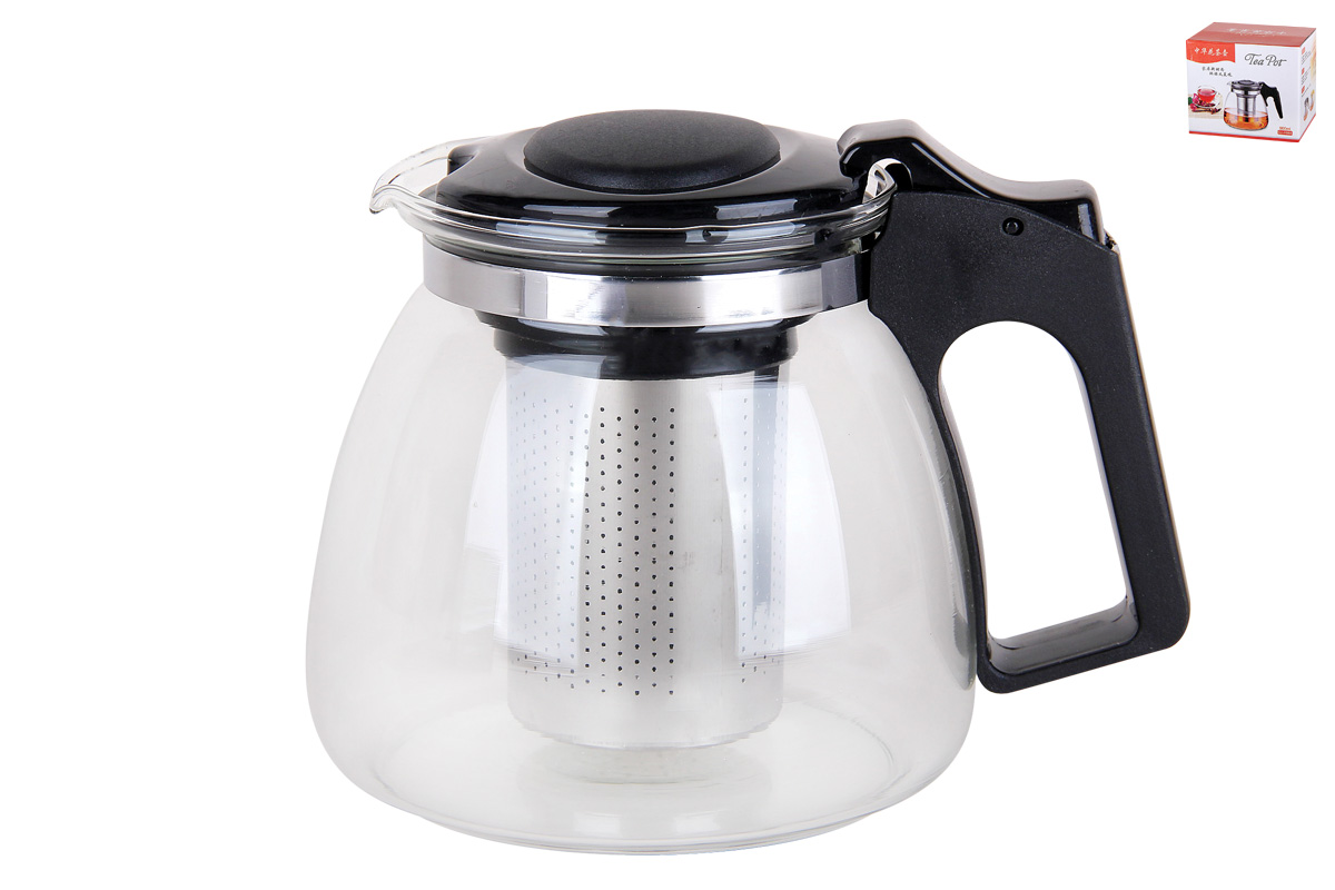 Заварочный чайник изготовлен из закаленного стекла со съемным фильтром и удобной крышкой и ручкой из пластика. Посуда предназначена для заваривания разнообразных сортов чая и других напитков.
