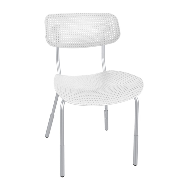 Функция регулировки по высоте обеспечивает комфортное положение и поможет в выработке правильной осанки. Изменение высоты стула в соответствии с ростовой группой осуществляется путем регулировки нижней части опор каркаса с помощью винтов. Каркас подходит для 4-й (средний рост 150 см), 5-й (средний рост 165 см) и 6-й (средний рост 180 см) ростовой группы.