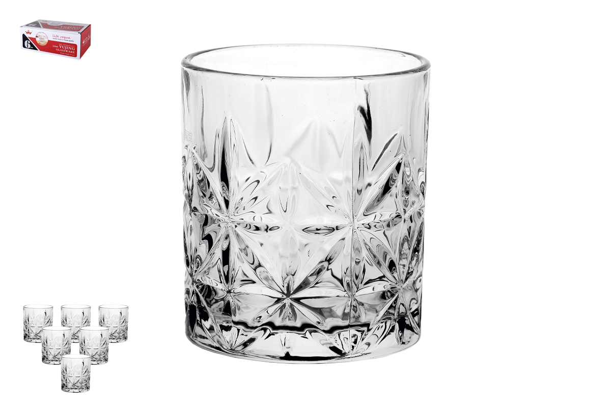 Комплект бокалов рассчитан на 6 персон и выполнен из качественного стекла. Стаканы представлены в оригинальной форме с выпуклым узором и устойчиво стоят на поверхности за счет утолщенного дна.