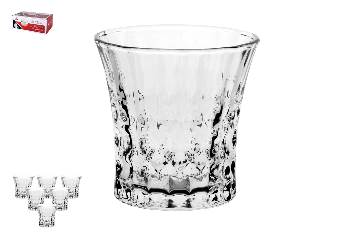Комплект бокалов рассчитан на 6 персон и выполнен из качественного стекла. Стаканы представлены в оригинальной форме с выпуклым узором и устойчиво стоят на поверхности за счет утолщенного дна.