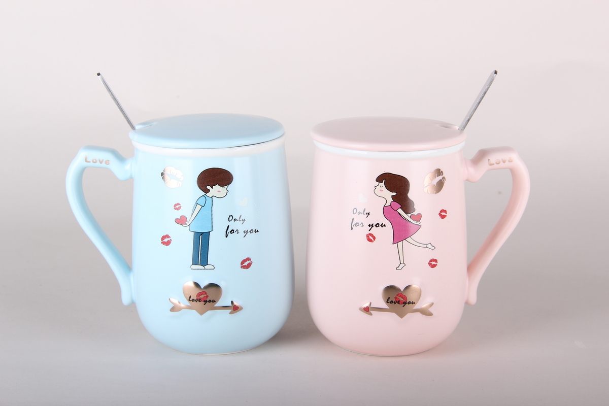 Кружка с крышкой и ложкой 400 мл (4 дизайна)