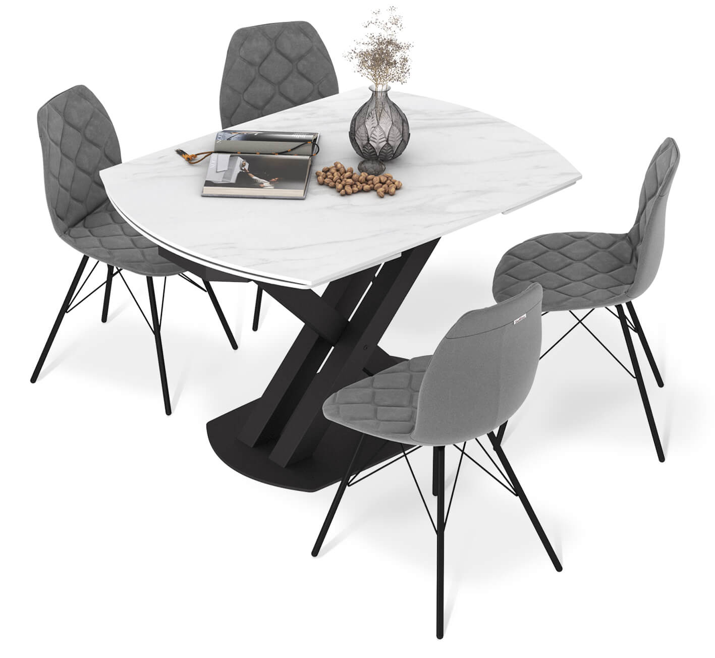 Стулья, в свою очередь, прекрасно дополняют обеденную группу и делают её визуально воздушной за счёт своего практичного и современного дизайна.