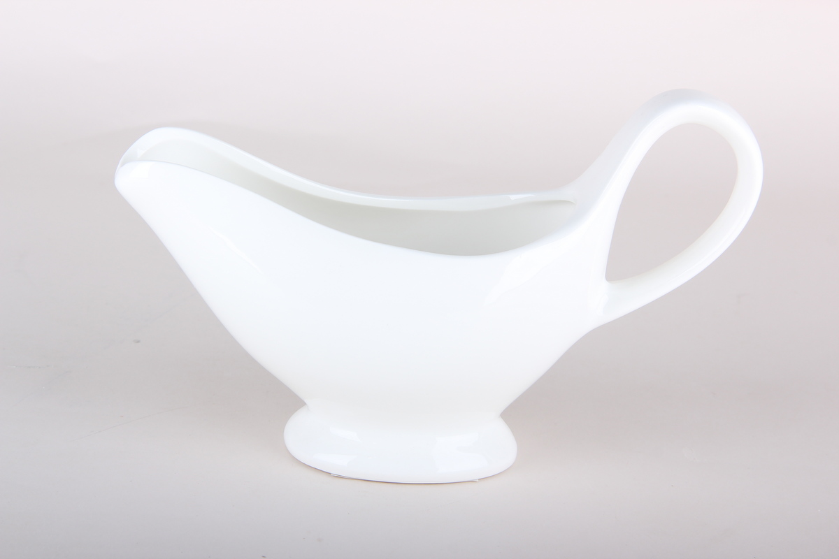Сливочник изготовлен из высококачественного белоснежного фарфора. Посуда представлена в лаконичном дизайне.