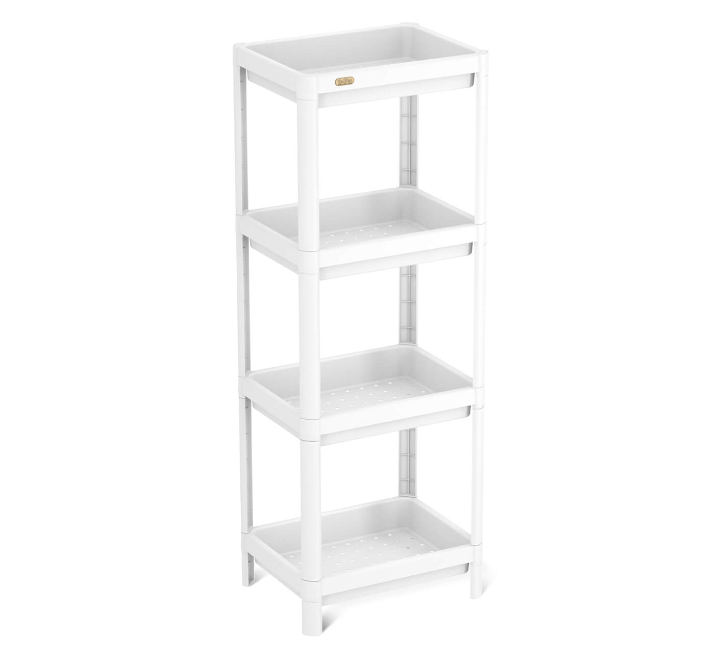 Этот стеллаж оснащён четырьмя полками с бортиками высотой 6 см , которые надежно защищают ваши вещи от падения. На дне каждой полки имеются отверстия, благодаря которым влага и вода не будут накапливаться.