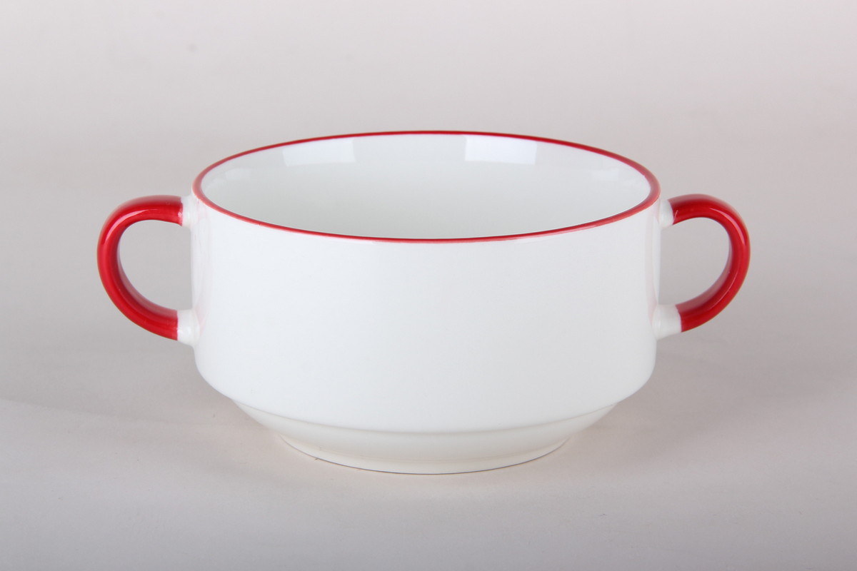 Бульонница с двумя ручками выполнена из качественного фарфора. Изделие представлено в стильном дизайне.