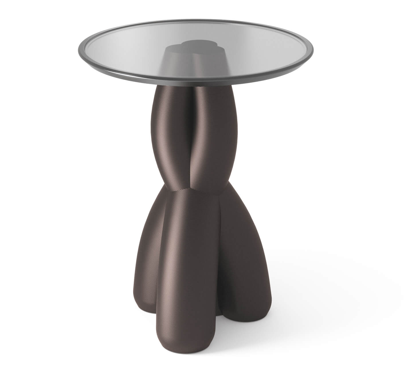 Специальная покраска создает иллюзию металла на солнце, а полупрозрачная столешница подчеркивает игру света и архитектурность форм.
