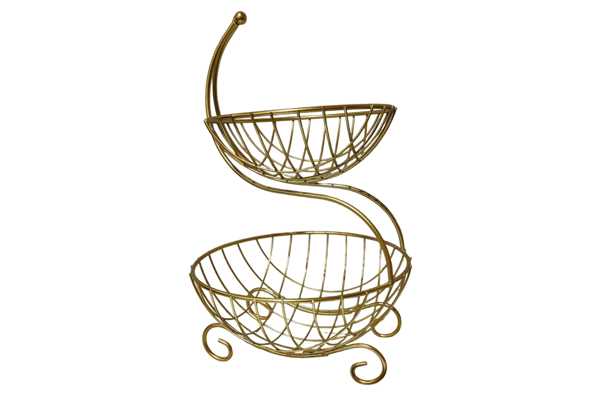 Ваза выполнена из качественного металла и состоит из 2 ярусов. Фруктовница устойчиво стоит на поверхности и оснащена ручкой для переноски.
