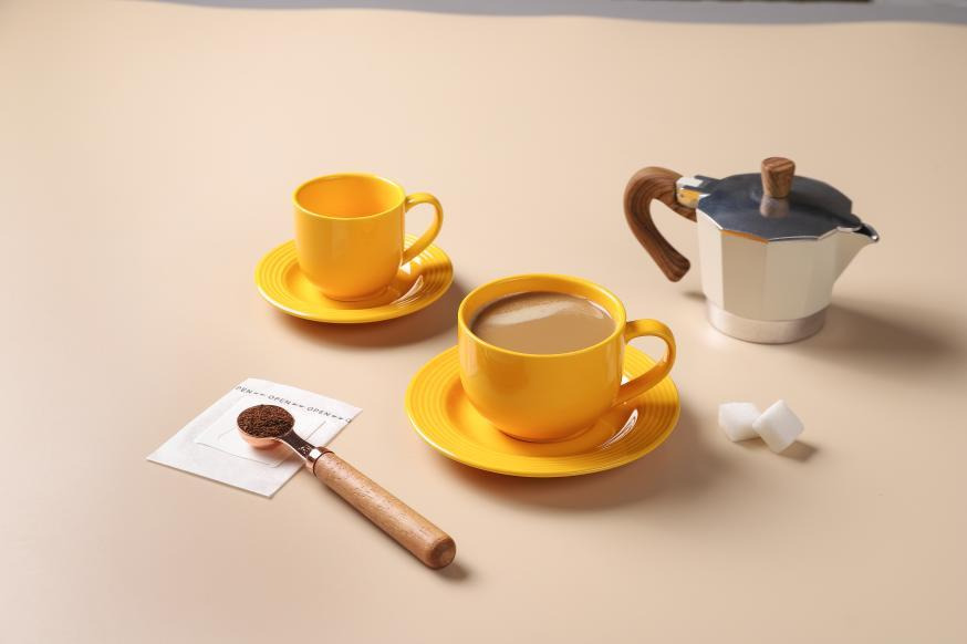 Чайный комплект на 6 персон выполнен из цветного фарфора. Посуда представлена в лаконичном стильном дизайне.