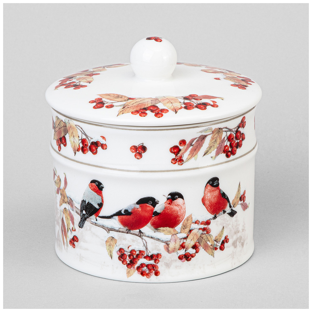 Банка для хранения из коллекции "Лесная сказка" выполнена из фарфора с керамической крышкой. Изделие украшено приятным рисунком в виде ярких снегирей в снежном зимнем лесу. Такая банка поможет сохранить свежесть и аромат ваших продуктов.