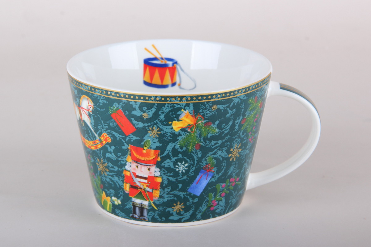 Фарфоровая кружка представлена из коллекции "Щелкунчик и мышиный король" в зеленом цвете. Изделие имеет дизайнерский декор, который делает модель нарядной.