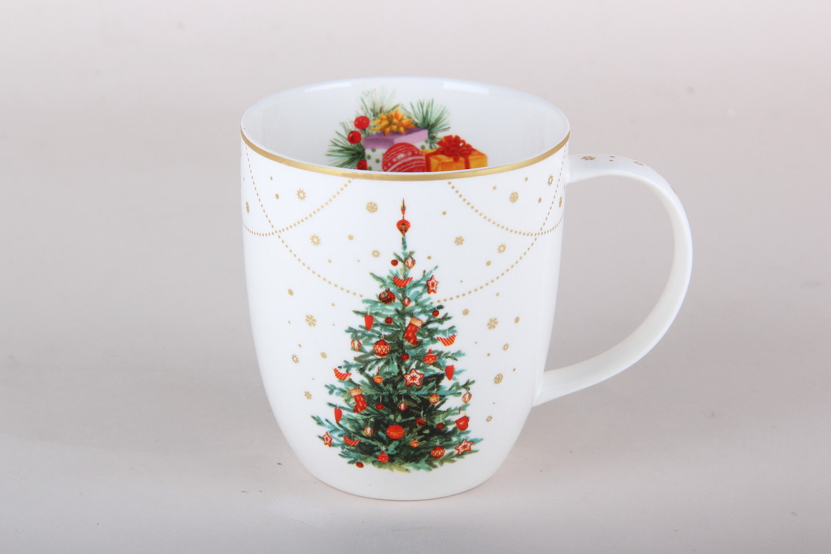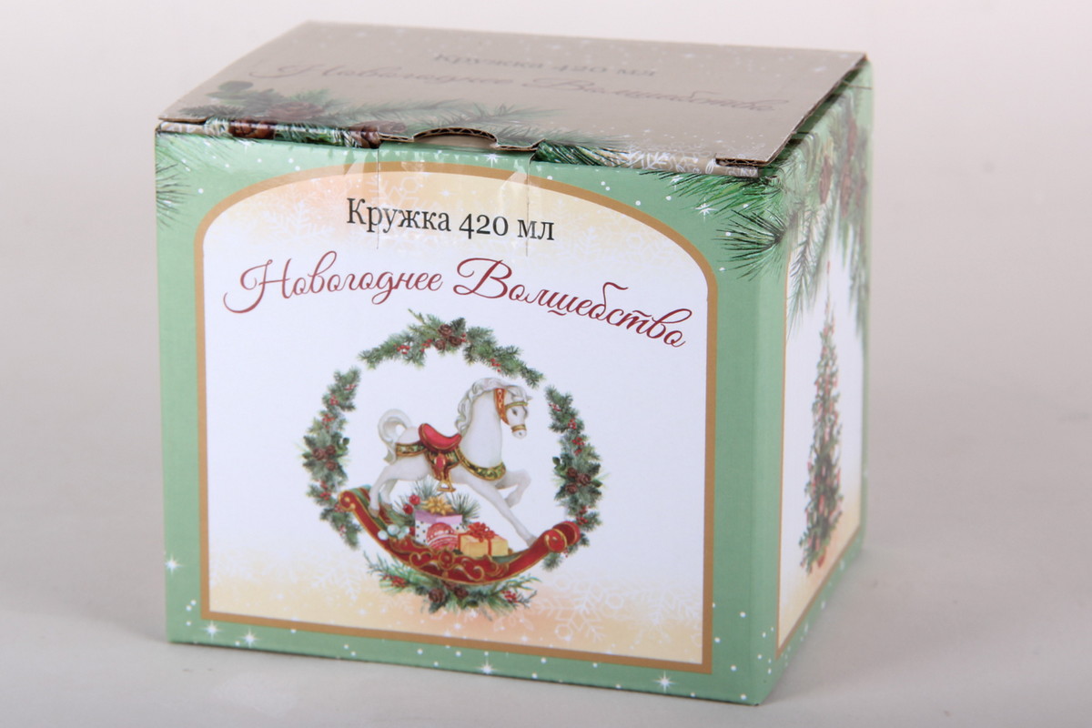 Фарфоровая кружка украшена ярким новогодним принтом. Благодаря подарочной упаковке, изделие можно преподнести в качестве презента на праздник.