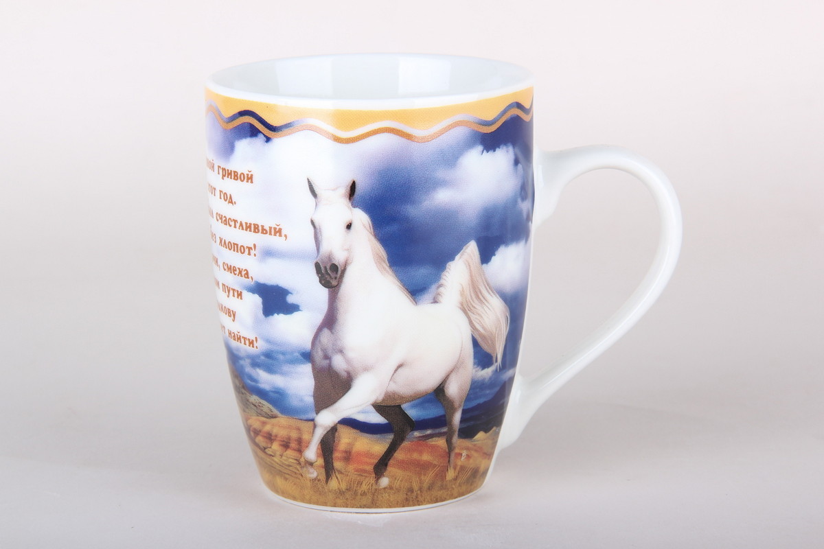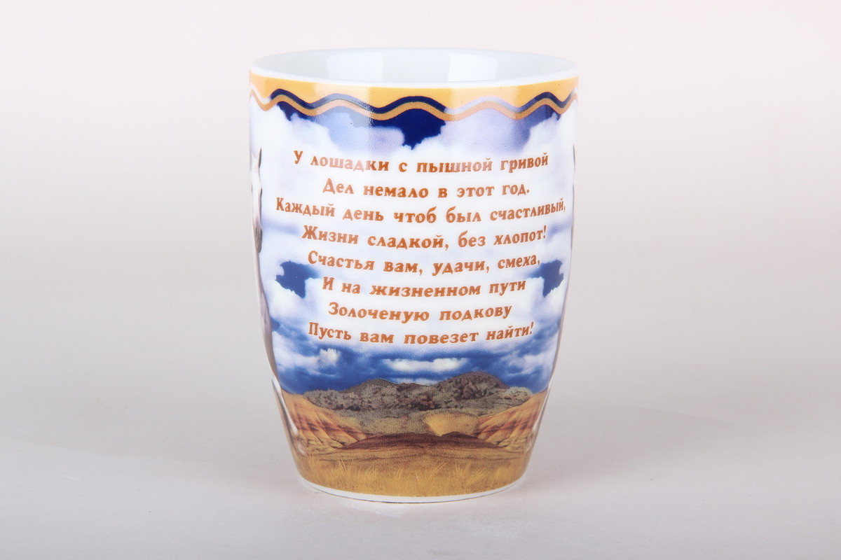 Фарфоровая кружка украшена интересным принтом в виде символа 2026 года и приятного пожелания. Такую кружку можно преподнести в качестве презента на праздник.