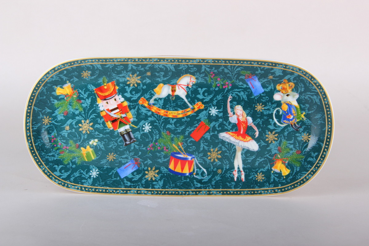 Блюдо овальное "Щелкунчик и мышиный король" (25х11,5 см, зеленый)