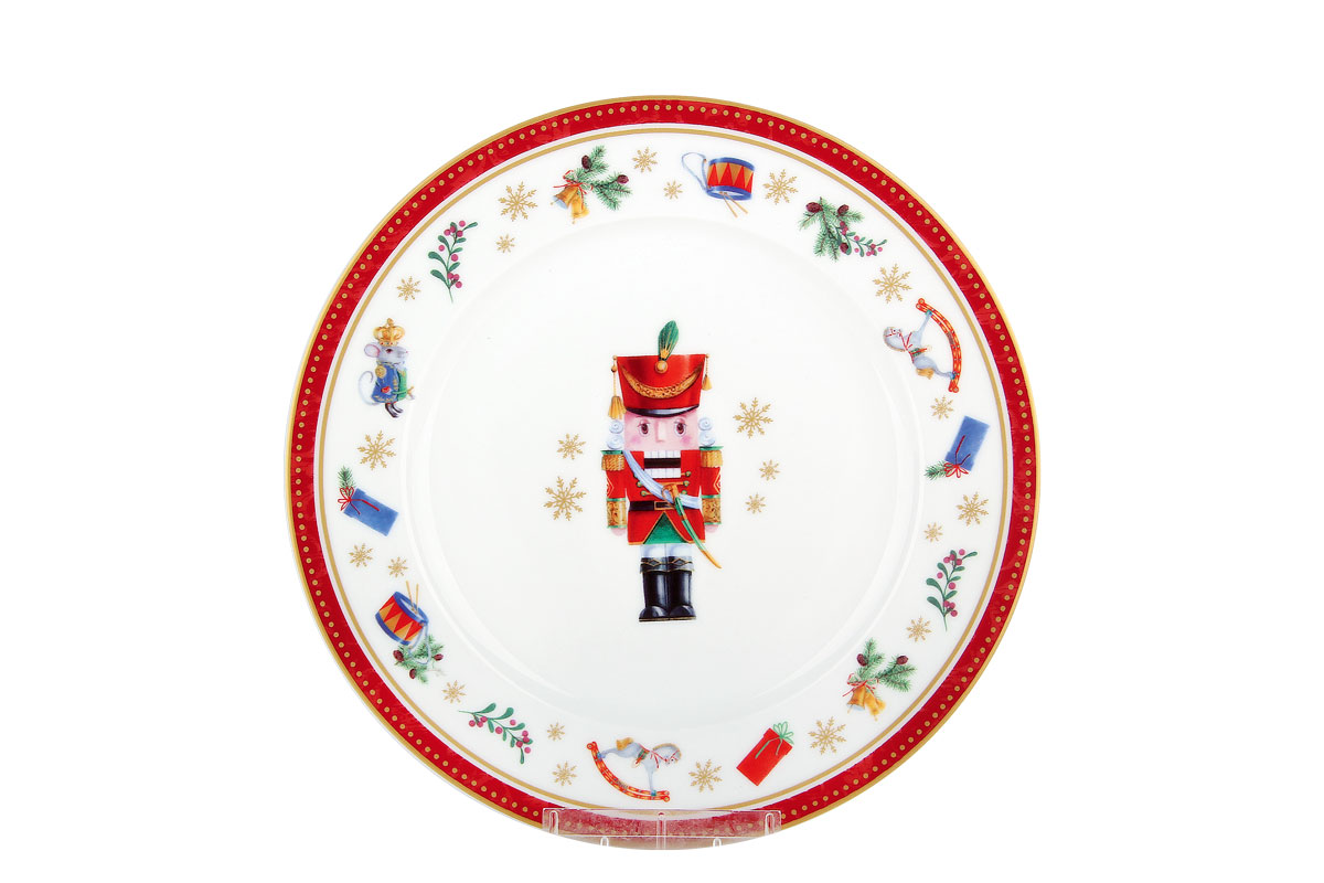 Десертная тарелка выполнена из высококачественного фарфора и декорирована по краю новогодним орнаментом. На дне изделия имеется изображение в виде знаменитого Щелкунчика. Такая коллекция посуды создаст неповторимую новогоднюю атмосферу.