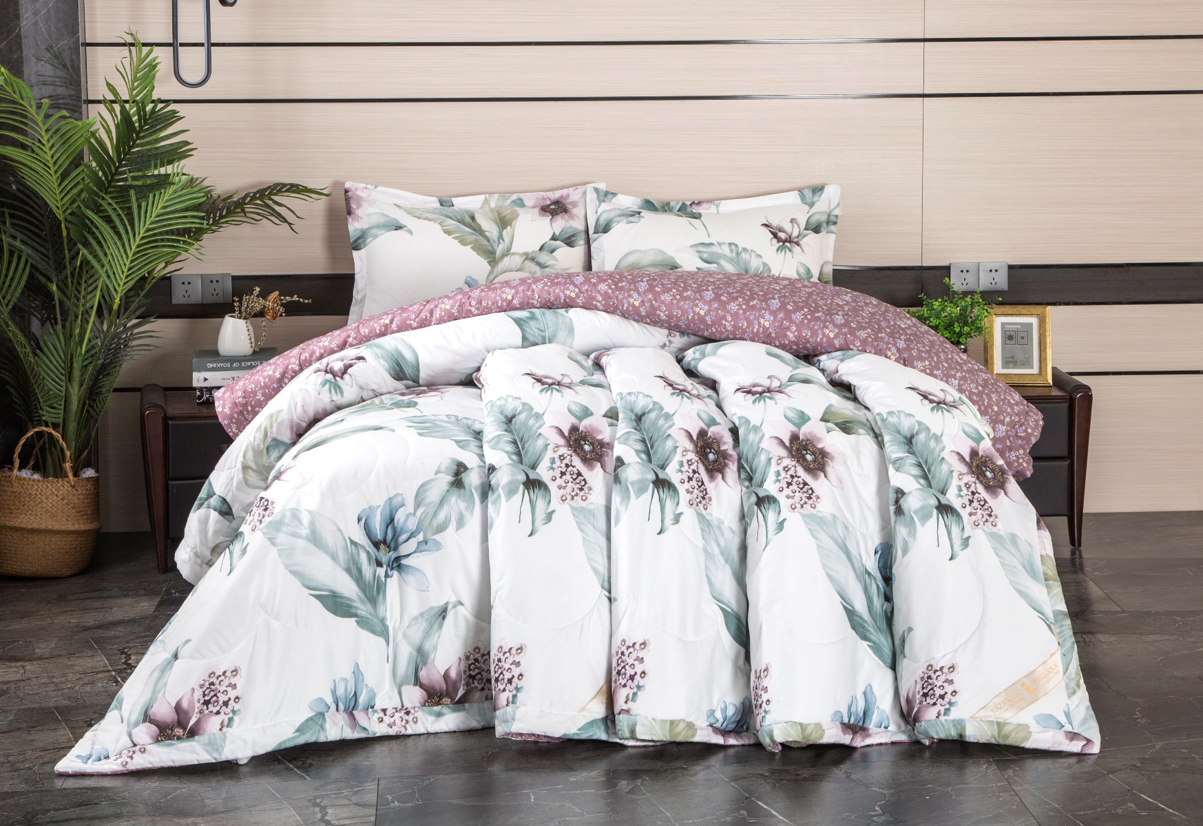 Элегантный романтичный комплект сочетает в себе уникальный стиль и комфорт, где каждый элемент продуман до мелочей. Высококачественные материалы: баланс природы и технологий. Постельное бельё выполнено из хлопка со смесовой нитью. Стёганое одеяло с наполнителем из эко-волокна микрогель - лёгкое, воздушное с потрясающей способностью пропускать воздух, что создаёт ощущение невесомости и делает его идеальным для использования круглый год.