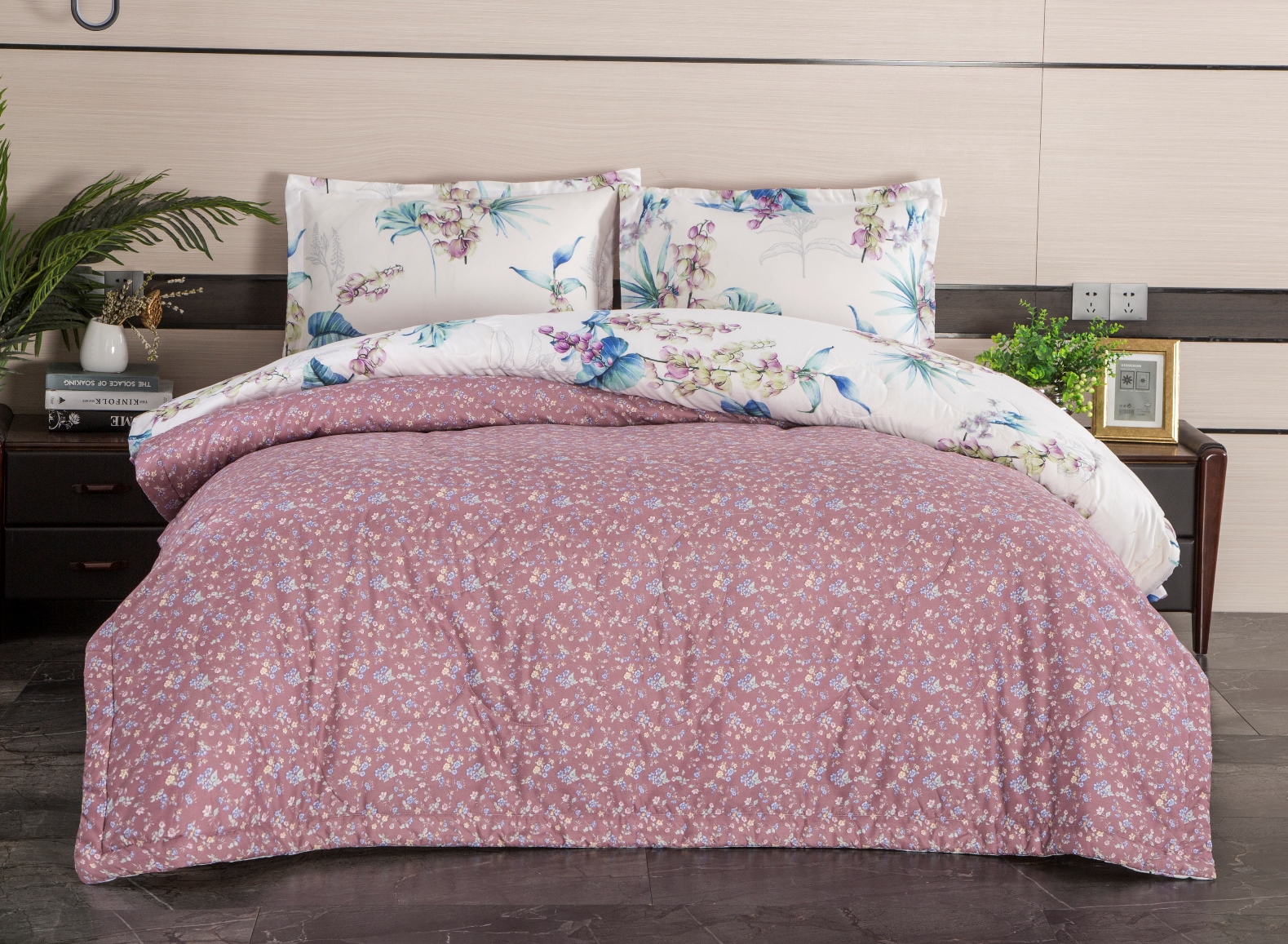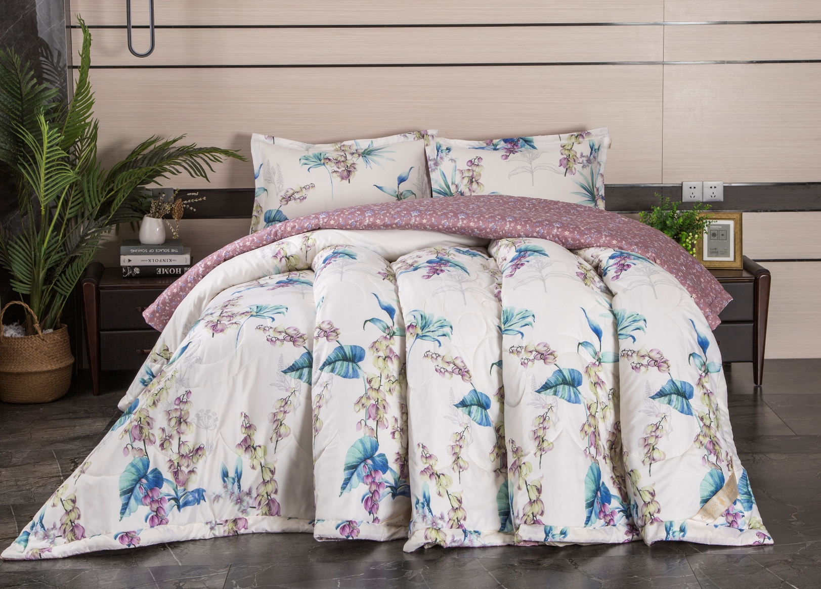 Элегантный романтичный комплект сочетает в себе уникальный стиль и комфорт, где каждый элемент продуман до мелочей. Высококачественные материалы: баланс природы и технологий. Постельное бельё выполнено из хлопка со смесовой нитью. Стёганое одеяло с наполнителем из эко-волокна микрогель - лёгкое, воздушное с потрясающей способностью пропускать воздух, что создаёт ощущение невесомости и делает его идеальным для использования круглый год.