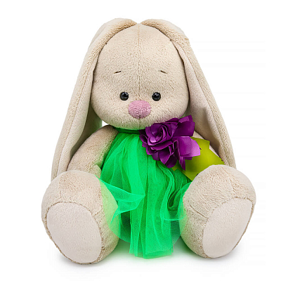 Игрушка мягконабивная "Зайка Ми в платье с пурпурным цветком" (18 см)