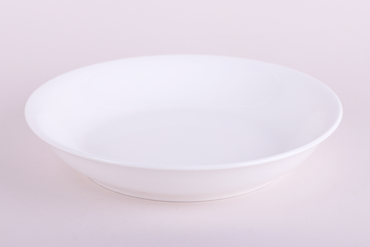 Суповая тарелка изготовлена из белой керамики. Посуда выполнена в классическом дизайне и легко впишется в любой набор посуды.