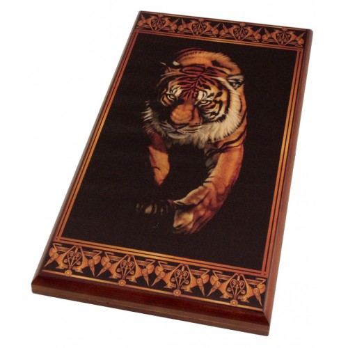 Большой набор игр "Шерхан" упакован в деревянный лакированный кейс, оформленный красочным изображением и дополнительным полем для игры в шашки и шахматы. Внутренняя часть кейса представляет собой игровое поле. В наборе - 2 игральных кубика, деревянные шашки и шахматные фигуры.
