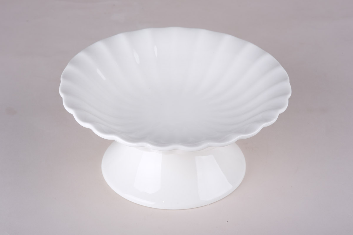 Очаровательное блюдо выполнено из высококачественного белого фарфора. Изделие расположено на устойчивой ножке и предназначено для подачи разнообразных закусок, сладостей, фруктов.
