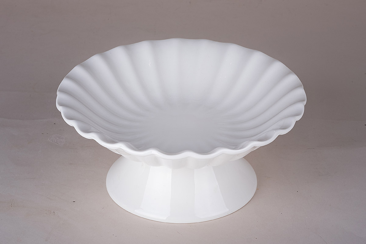 Очаровательное блюдо выполнено из высококачественного белого фарфора. Изделие расположено на устойчивой ножке и предназначено для подачи разнообразных закусок, сладостей, фруктов.