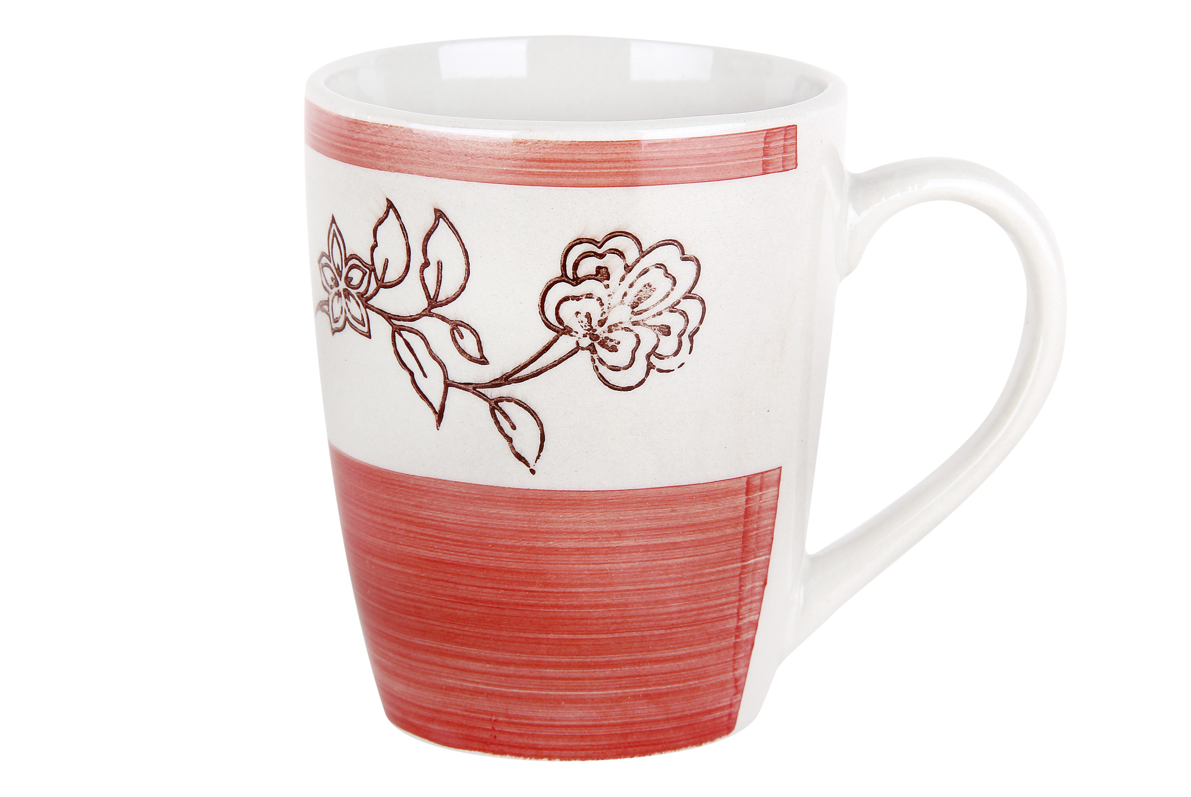 Кружка декорирована нежным цветочным узором. Керамическое изделие представлено в форме бочка. Стильный и современный дизайн впишется в любой кухонный интерьер.