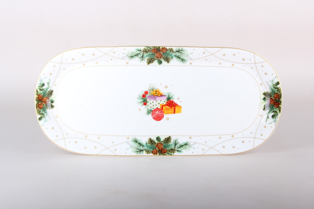 Овальное блюдо с новогодним рисунком - прекрасный презент на праздники. Великолепное качество и идеальное исполнение понравятся любому.