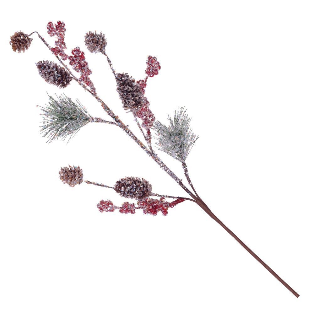 Декоративная ветка изготовлена из полимерных материалов и дополнена мерцающими глитерными листьями. Можно использовать для новогоднего и рождественского декорирования дома. Будет прекрасно сочетаться с самыми разными ветками и цветами в интерьерных композициях, а так же на елке.