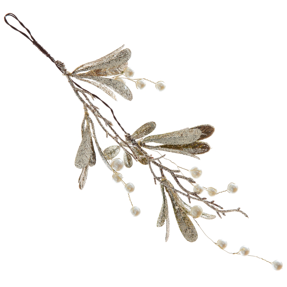 Декоративная ветка изготовлена из полимерных материалов и дополнена мерцающими глитерными листьями. Можно использовать для новогоднего и рождественского декорирования дома. Будет прекрасно сочетаться с самыми разными ветками и цветами в интерьерных композициях, а так же на елке.
