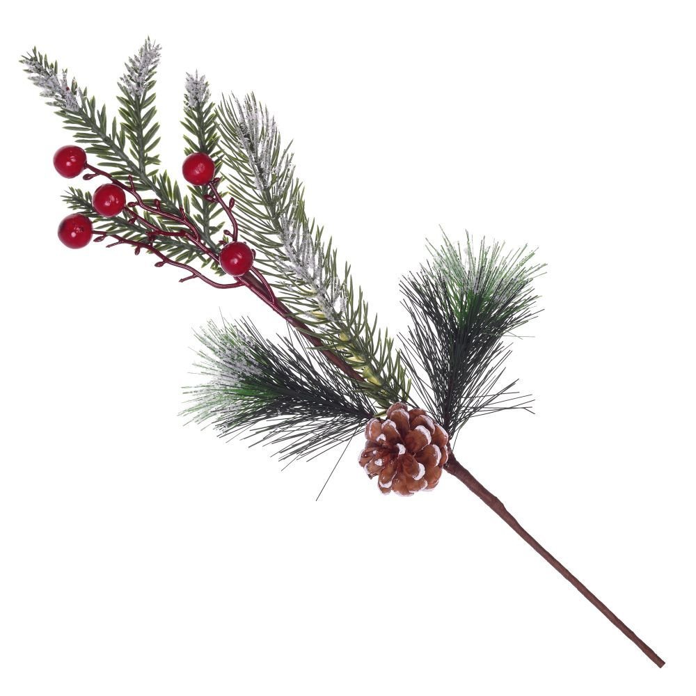 Декоративное изделие выполнено из качественных материалов и на долгое время сохранит свой первозданный вид. Украшение представлено в виде еловой веточки с ярким декором и может выполнить роль неповторимого новогоднего букета, если разместить несколько веточек в вазе.