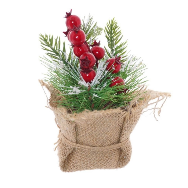 Декоративное изделие выполнено из качественных материалов и на долгое время сохранит свой первозданный вид. Украшение представлено в виде композиции в горшочке и может выполнить роль неповторимого новогоднего декора.