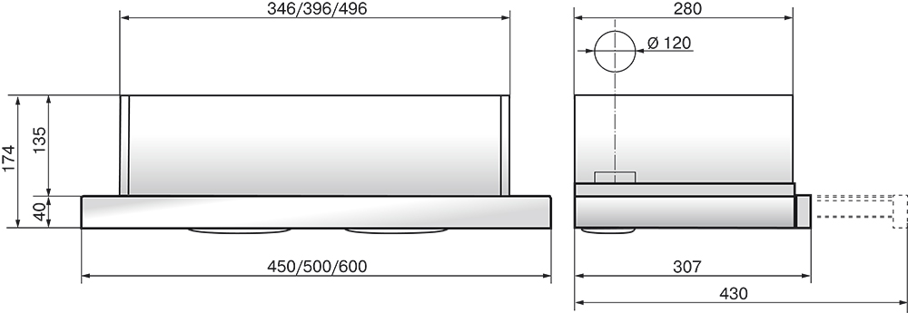 Кухонная вытяжка ELIKOR Врезной блок 52 нержавейка (400)