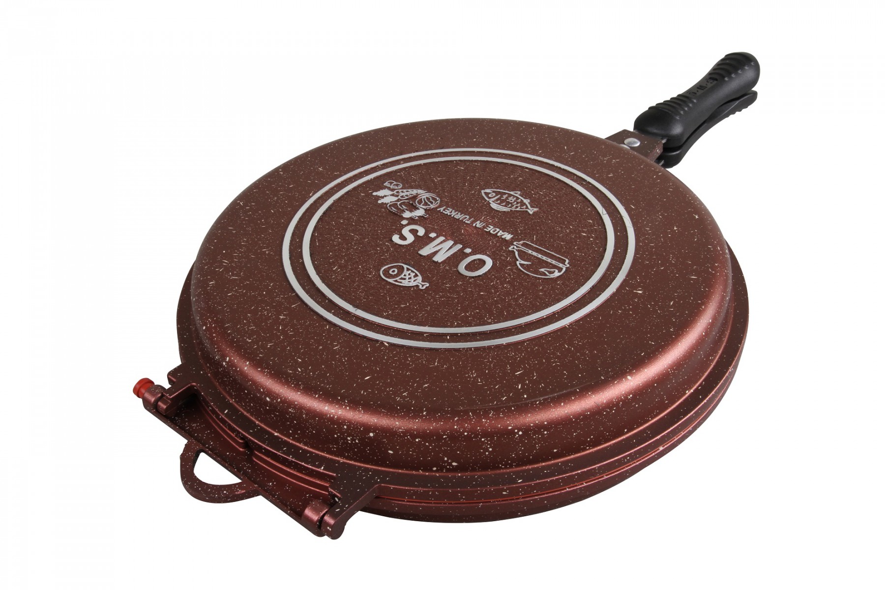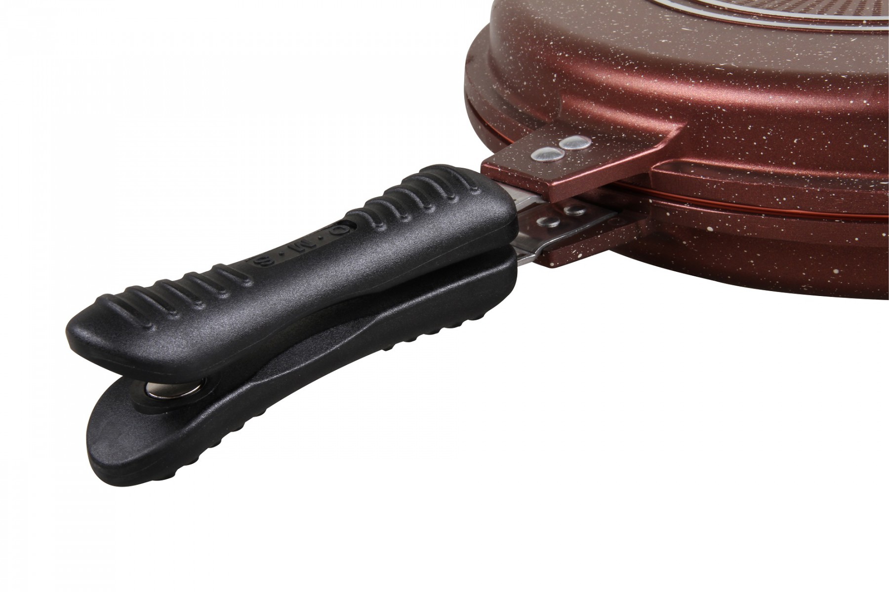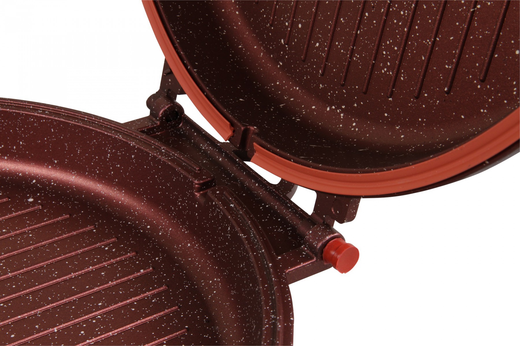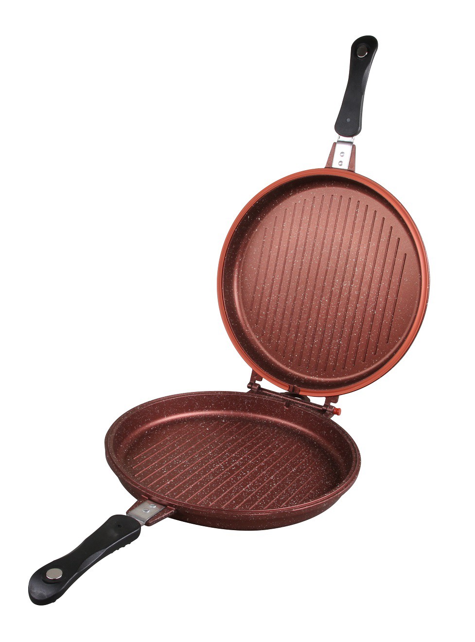 Двусторонняя сковорода-гриль многофункциональная и имеет антипригарное покрытие.