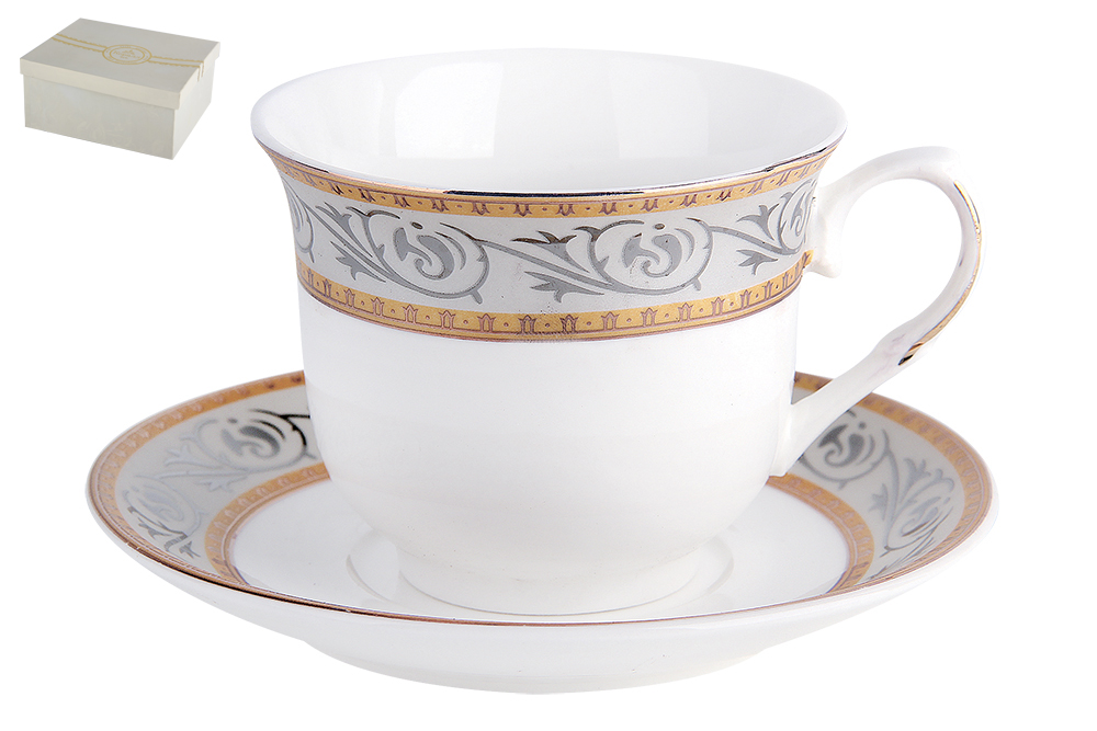 Набор изготовлен из фарфора и рассчитан на 1 персону. Комплект состоит из чашки и блюдца.